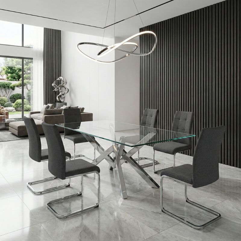 Αρχική σελίδα Έπιπλα εσωτερικού χώρου Καρέκλες - Πολυθρόνες τραπεζαρίας Καρέκλα τραπεζαρίας Laura Megapap γκρι ύφασμα – μεταλλική βάση χρωμίου 42x58x98εκ.
