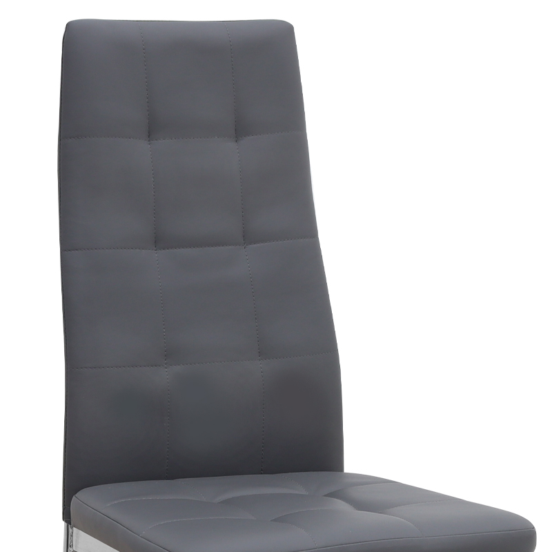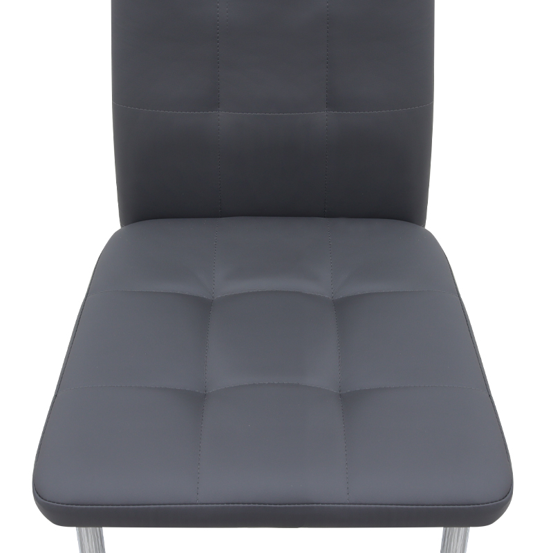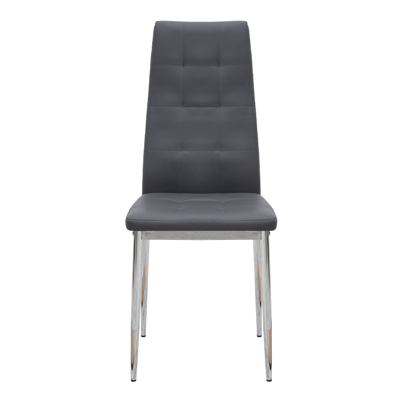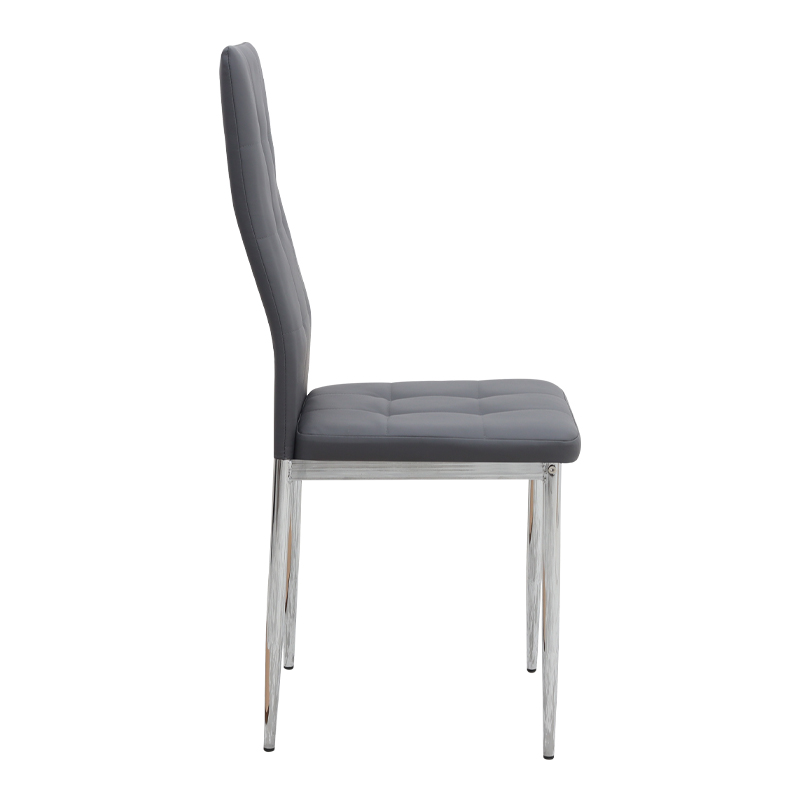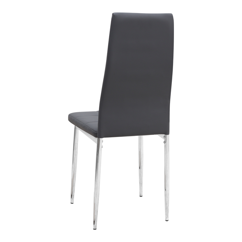 Η καρέκλα Rosa διαθέτει κάθισμα από τεχνόδερμα PU σε γκρι χρώμα και μεταλλικά πόδια χρωμίου, προσφέροντας αντοχή και πρακτικότητα στην καθημερινή χρήση. Ο λιτός, μοντέρνος σχεδιασμός της την κάνει κατάλληλη για κάθε τύπο τραπεζαρίας, οικιακής ή επαγγελματικής, προσφέροντας μια διακριτική αλλά κομψή παρουσία στον χώρο.