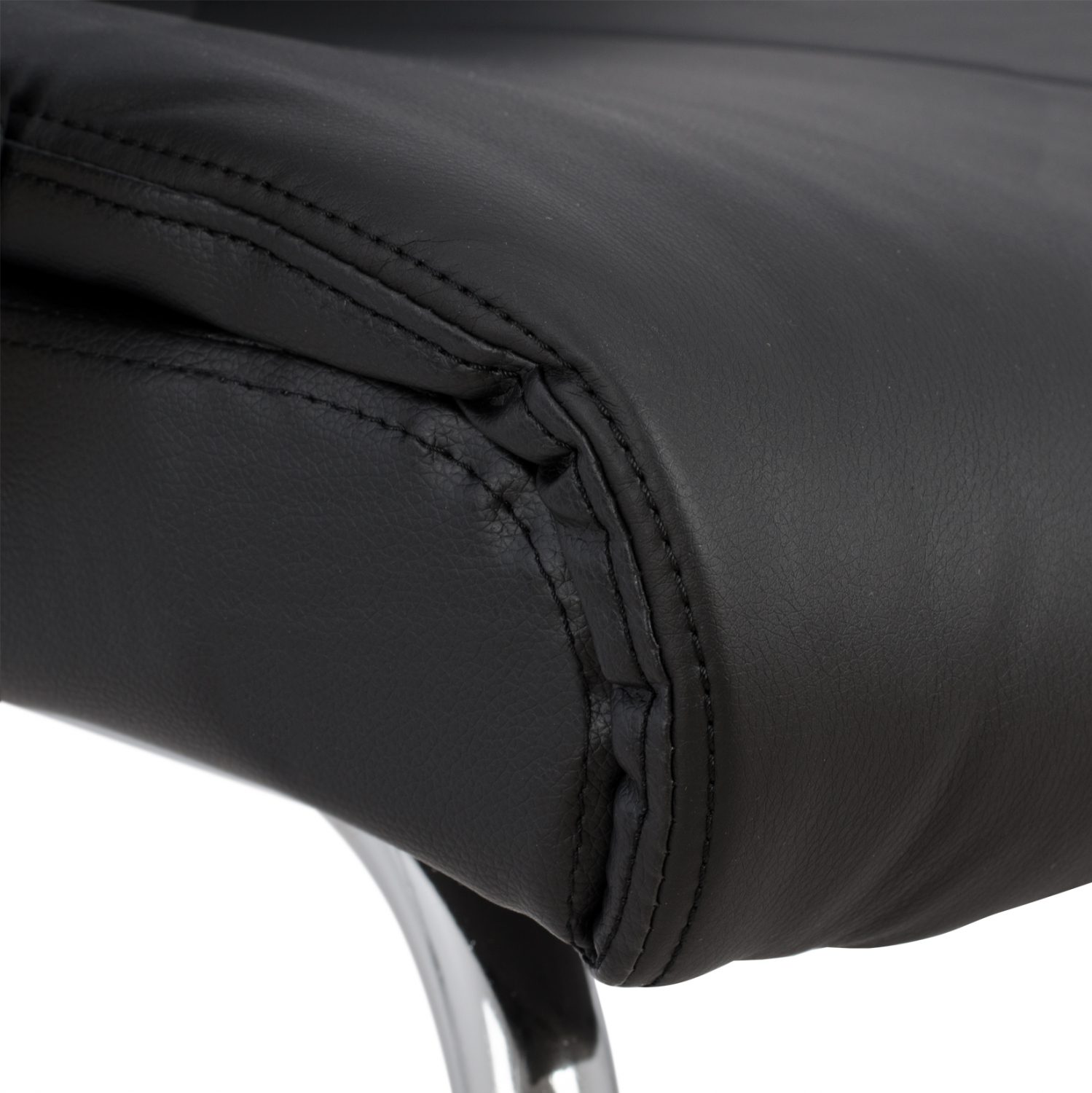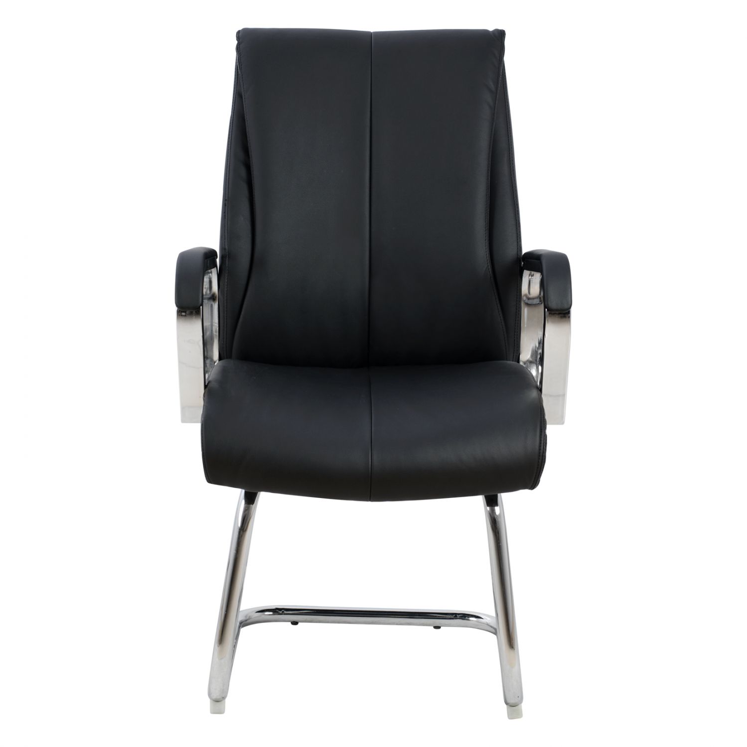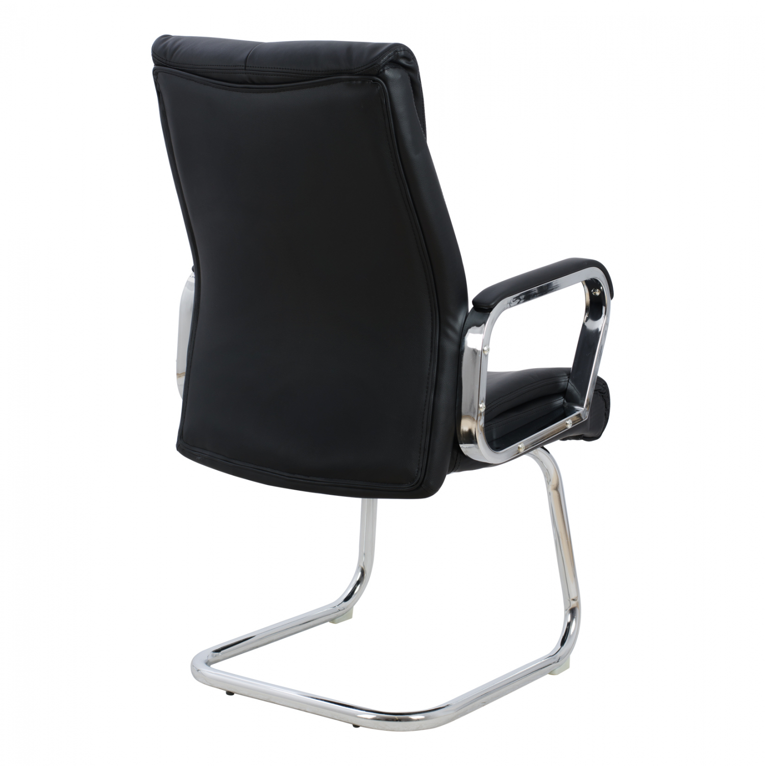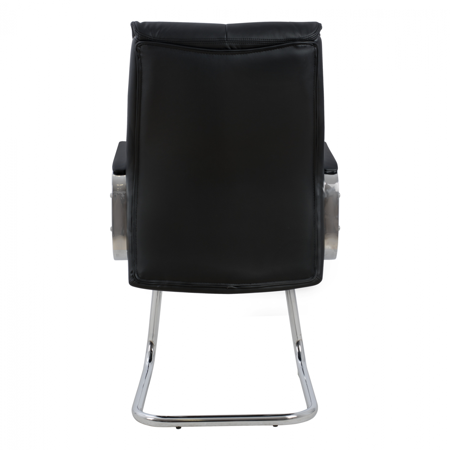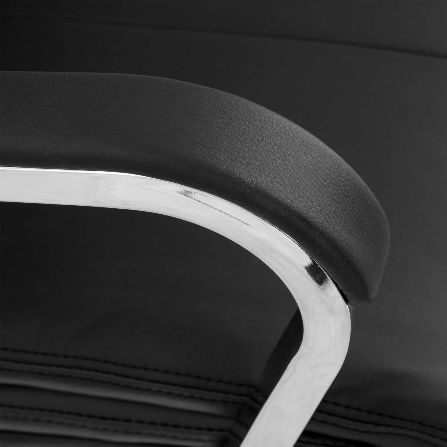 Καρέκλα συνεργασίας με μπράτσα, από υψηλής ποιότητας PU σε μαύρη απόχρωση και σκελετό από χρωμιομένο ατσάλι για ύψιστη ασφάλεια, σταθερότητα και αντοχή.