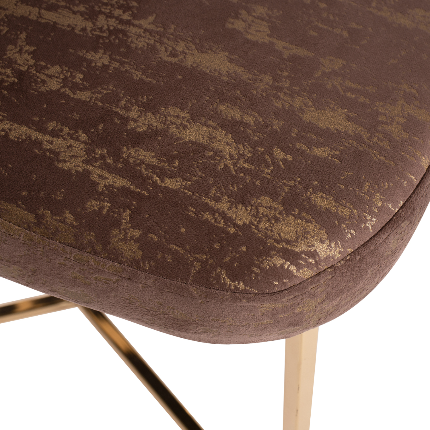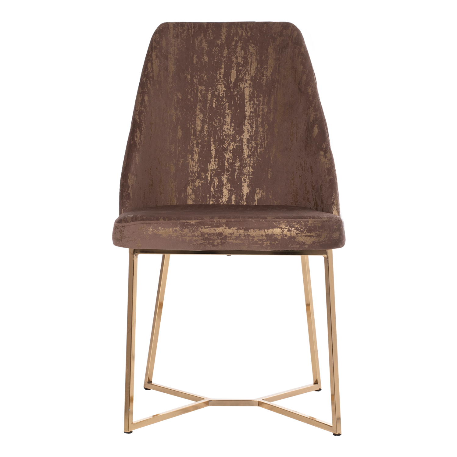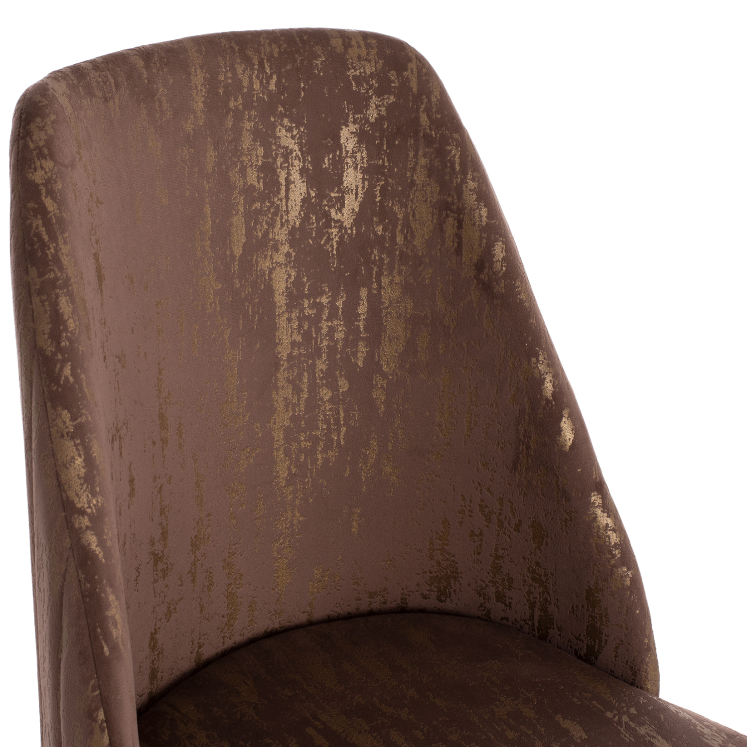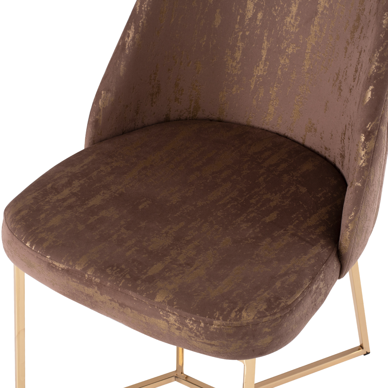 Αυτή είναι η καρέκλα ZIZI κυρίως για επαγγελματική χρήση, σε ΚΑΦΕ χρώμα με χρυσά «νερά», και βάση μεταλλική σε χρυσό χρώμα και σε χιαστί διάταξη, αντί για τα κλασσικά πόδια. Διαθέτει ψηλή και κυρτή πλάτη, πράγμα που προσφέρει άνεση και πρακτικότητα, όπως και το κάθισμα που αποτελείται από αφρώδες υλικό μέτριας σκληρότητας.