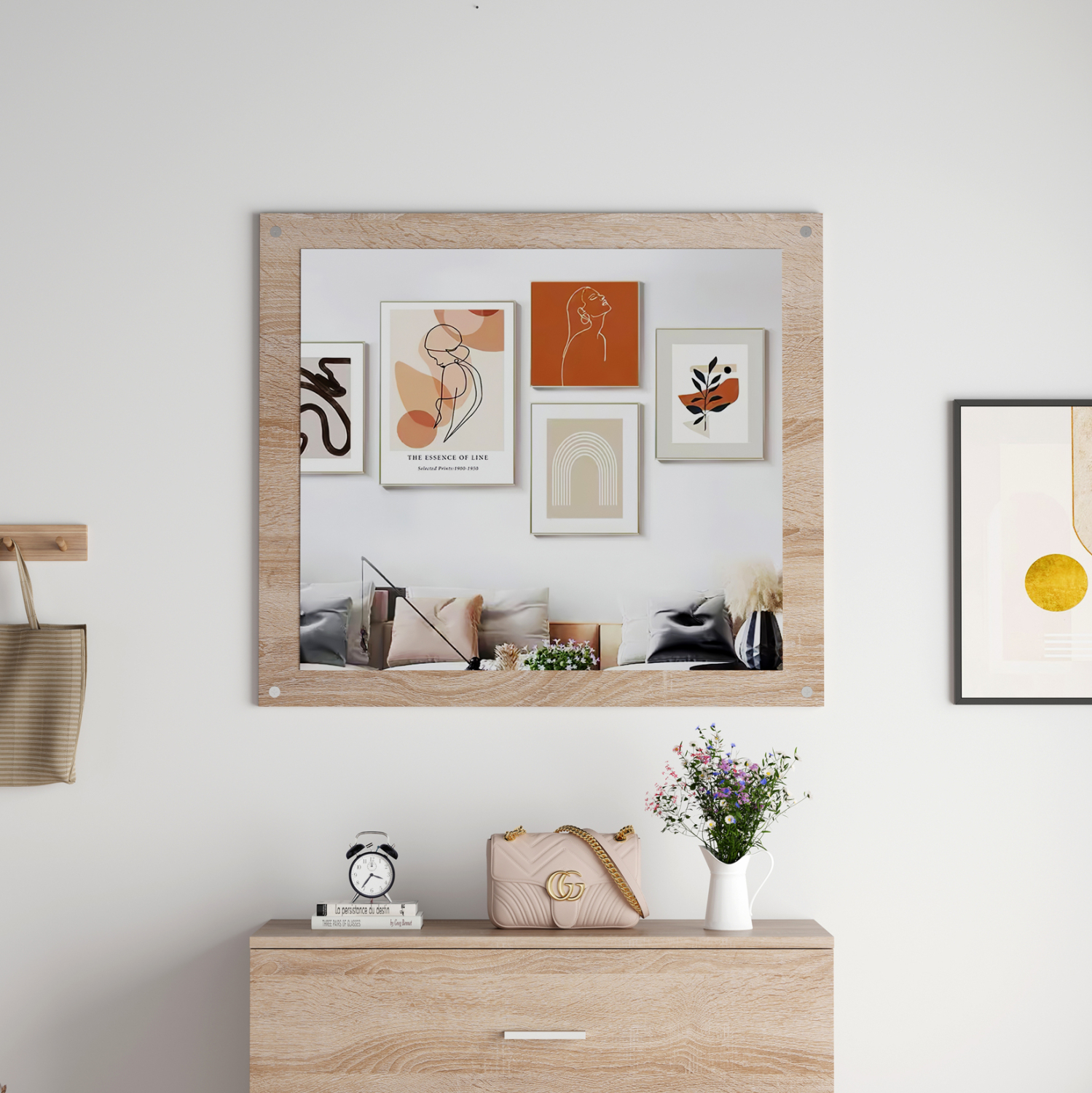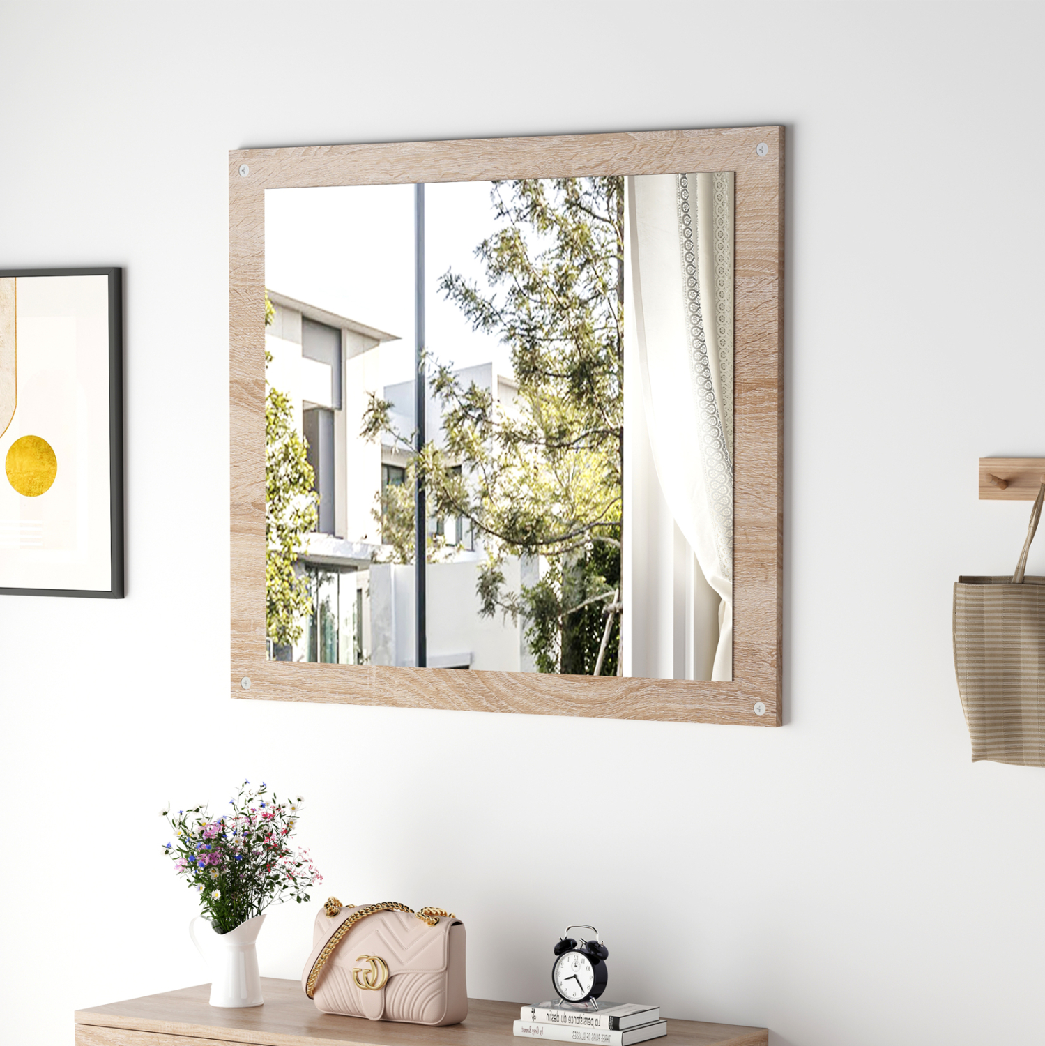 Ο HM4360 είναι ένας ορθογώνιος καθρέφτης τοίχου με σκελετό σε χρώμα SONAMA, κομψός και σε άκρως ικανοποιητική διάσταση. Ένα χρήσιμο «εργαλείο» για διάφορα δωμάτια του σπιτιού, που θα ταιριάξει με την διακόσμηση σας, είτε είναι κλασική είτε πιο μοντέρνα.
