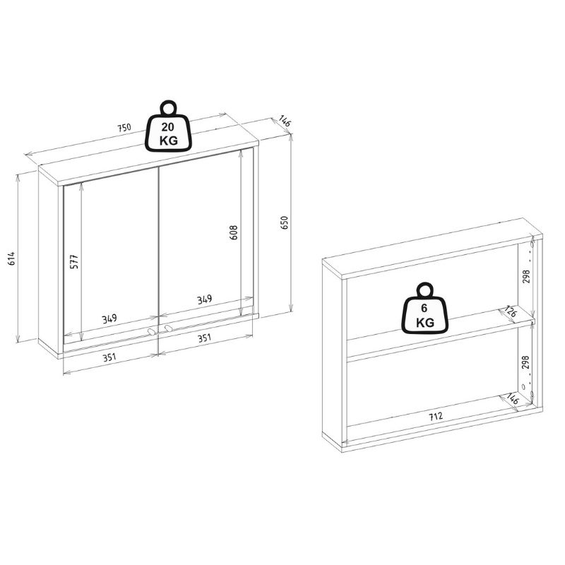 - Διαστάσεις: Μήκος 75 x Βάθος 14,6 x Ύψος 65 εκ.