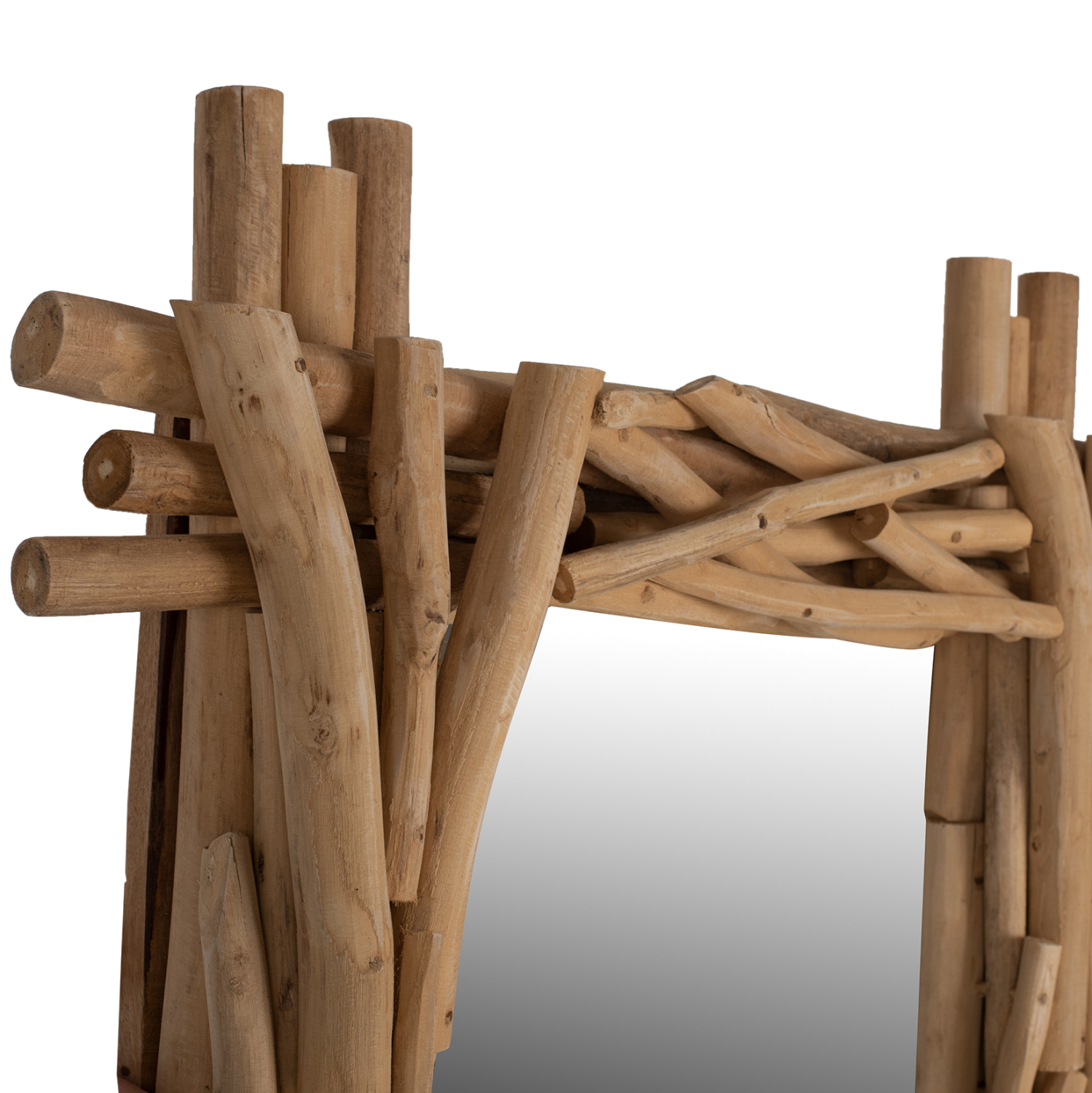 Πέρα από τον καθρέπτη, η υπόλοιπη κατασκευή έχει γίνει από μασίφ κλαδιά του δέντρου ΤΕΑΚ. Όταν αναφερόμαστε σε μασίφ, εννοούμε τα ξύλα που κατασκευάζονται ολοκληρωτικά από τον κορμό δέντρου. Το μασίφ είναι η πιο ακριβή επιλογή σε είδος ξύλου αλλά ξεχωρίζει για την διαχρονική αισθητική του.