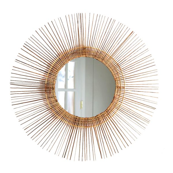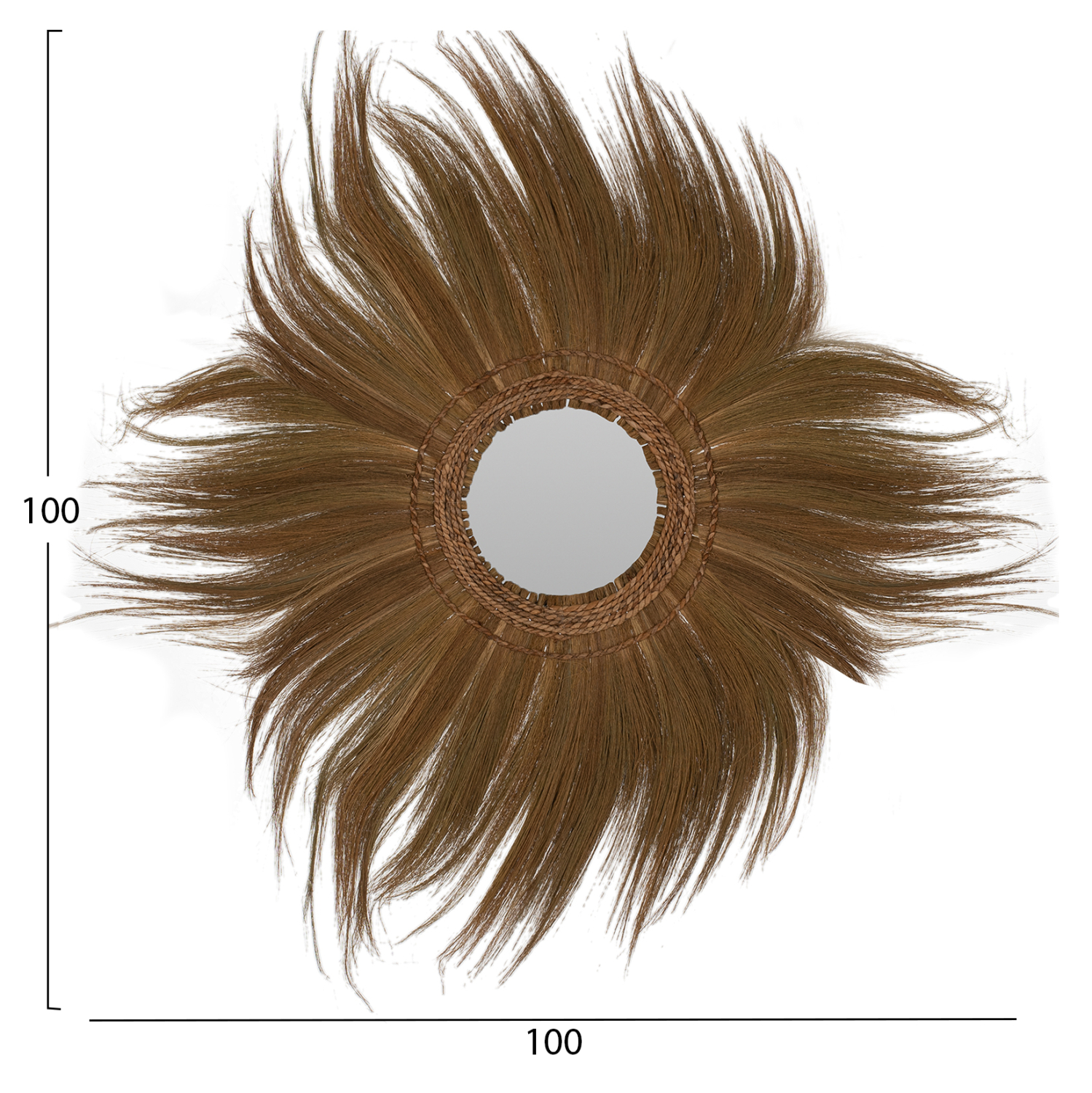 O καθρέπτης ΗΜ7735 για επαγγελματική χρήση, είναι πραγματικά ένα εντυπωσιακό κομμάτι στην διακόσμηση του χώρου σας! Το design του είναι μοναδικό με το αριστοτεχνικά κατασκευασμένο πλαίσιο από φλοιούς μπανάνας, το οποίο στο κέντρο του «φιλοξενεί» τον καθρέπτη. Οι φλοιοί είναι στο φυσικό τους χρώμα και οι διαστάσεις όλης της κατασκευής είναι μεγάλες.