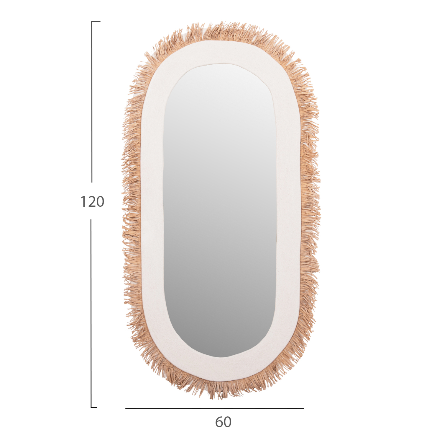 Ο καθρέπτης SANTORINI είναι ένας χειροποίητος καθρέφτης τοίχου με ΥΠΟΛΕΥΚΟ σκελετό σε οβάλ σχήμα, με ΜΠΕΖ ακρυλικό grass ως περιμετρική διακόσμηση. Ένα χρήσιμο «εργαλείο» για οποιοδήποτε δωμάτιο χρειάζεστε έναν καθρέπτη! Ιδανικός για να συμπληρώσει με τον καλύτερο τρόπο διακόσμηση “νησιώτικου” στυλ!