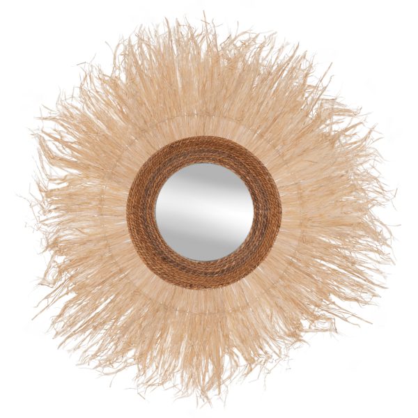 O στρογγυλός καθρέπτης ΗΜ7797 είναι πραγματικά ένα εντυπωσιακό κομμάτι στην διακόσμηση του χώρου σας! Το design του είναι όμορφο με πλαίσιο από 3 δακτυλίους με φυσικά υλικά. Οι δύο μικρότεροι δακτύλιοι έχουν κατασκευαστεί από Mendong Grass σε χρυσό χρώμα, ενώ ο μεγαλύτερος πίσω δακτύλιος έχει γίνει με ίνες κάνναβης Μανίλας σε φυσικό χρώμα. Ο καθρέπτης στο κέντρο είναι μικρός και συμπληρώνει με όμορφο τρόπο αυτό το διακοσμητικό κυρίως κομμάτι.