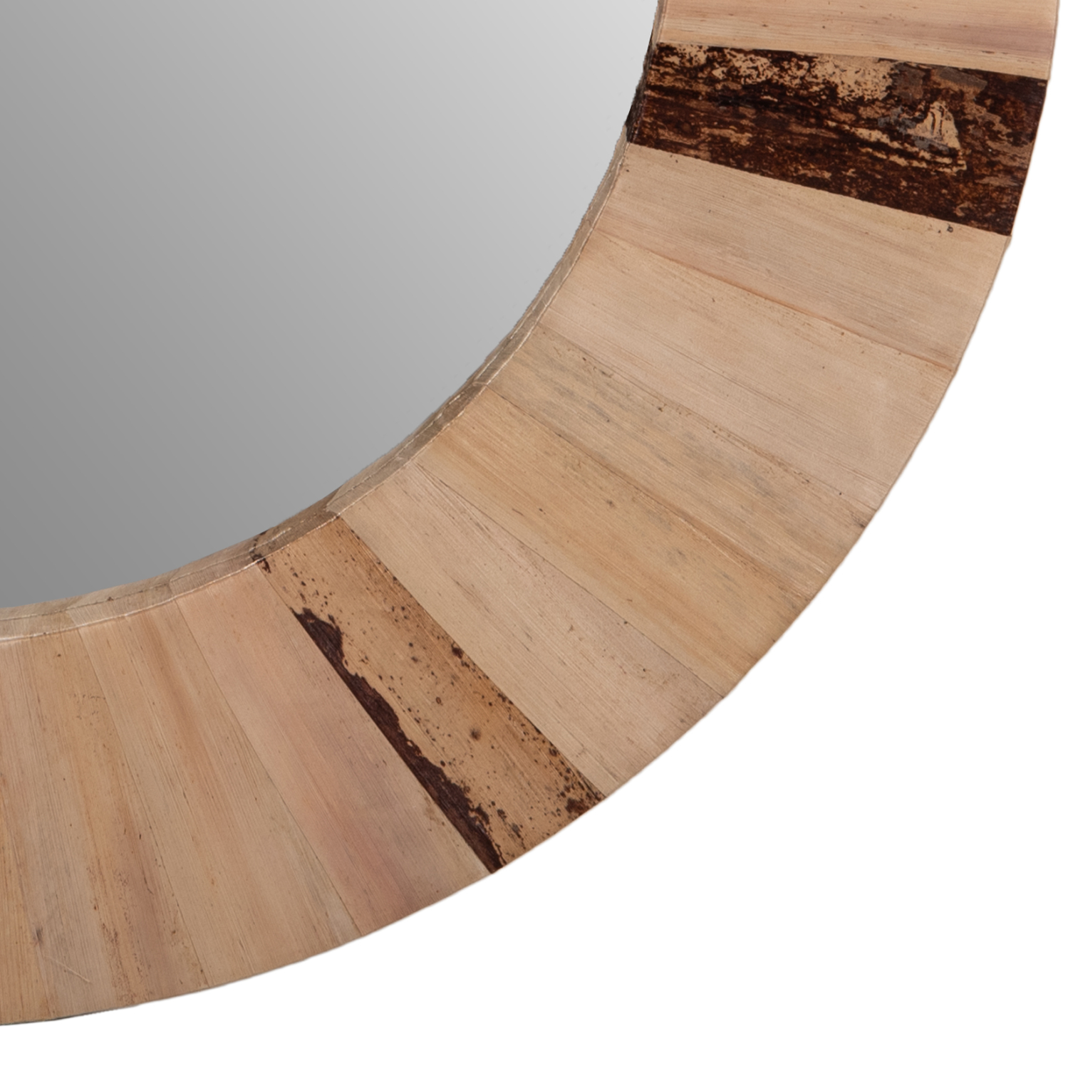 O καθρέπτης ΗΜ7837 από την νέα γκάμα των προϊόντων μας, είναι πραγματικά ένα εντυπωσιακό κομμάτι στην διακόσμηση του χώρου σας! Το design του είναι μοναδικό με το αριστοτεχνικά κατασκευασμένο στρογγυλό πλαίσιο από αποξηραμένες ίνες φύλλων φοίνικα, τα οποία δίνουν πλέον μια ξυλώδη αίσθηση. Οι ίνες (τα φύλλα) είναι στο φυσικό τους χρώμα και οι διαστάσεις όλης της κατασκευής είναι ικανοποιητικές.