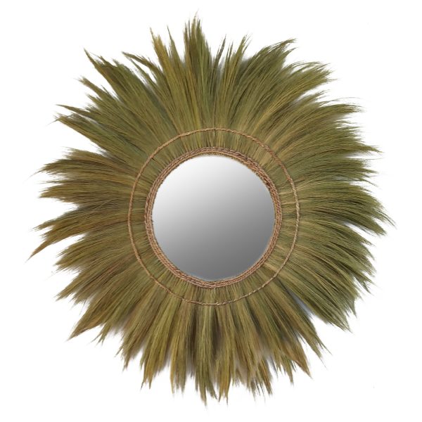 O καθρέπτης ΗΜ7732 είναι πραγματικά ένα εντυπωσιακό κομμάτι στην διακόσμηση του χώρου σας! Το design του είναι μοναδικό με την συμμετρική κυκλική διάταξη των sticks από κοκοφοίνικα, τα οποία στο κέντρο τους «φιλοξενούν» τον καθρέπτη. Τα ξύλα είναι στο φυσικό τους χρώμα και οι διαστάσεις όλης της κατασκευής είναι ικανοποιητικές.