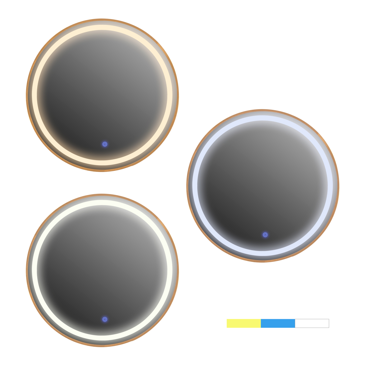 Ο ROUNDER είναι ένας στρογγυλός καθρέφτης τοίχου με ΧΡΥΣΟ πλαίσιο, κομψός και σε σχετικά μεγάλη διάσταση. Ωστόσο, αυτό που τον διαφοροποιεί σε σχέση με τους απλούς καθρέπτες είναι ότι διαθέτει φωτισμό LED ενσωματωμένο σε κυκλική διάταξη ακολουθώντας την «γραμμή» του πλαισίου. Ο φωτισμός ενεργοποιείται με ένα διακόπτη αφής στο εμπρός και κάτω μέρος του καθρέπτη, ενώ παράγει 3 διαφορετικά χρώματα φωτός. Ζεστό (κιτρινωπό), ελαφρύ μπλέ, και φυσικό λευκό, που ενεργοποιούνται πατώντας τον ίδιο διακόπτη αφής. Ένα χρήσιμο «εργαλείο» κυρίως για το μπάνιο αλλά και για οποιοδήποτε άλλο χώρο χρειάζεστε έναν καθρέπτη με φωτισμό!