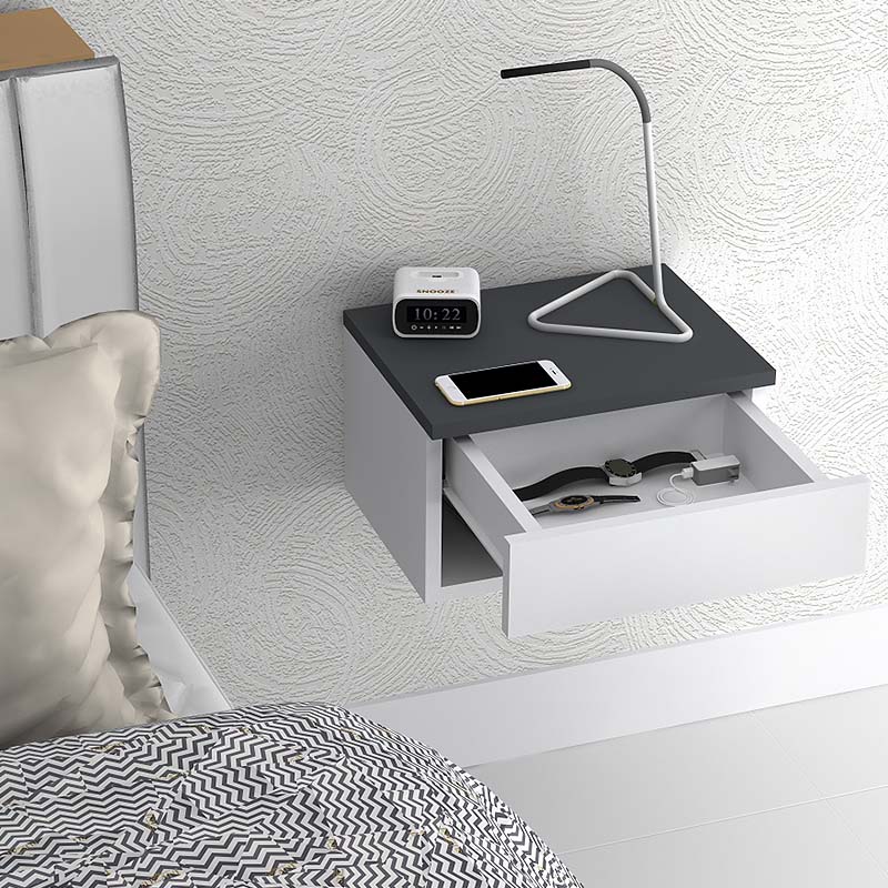 Κομοδίνο επιτοίχιο μελαμίνης Mary Megapap χρώμα ανθρακί – λευκό 40x30x23εκ.