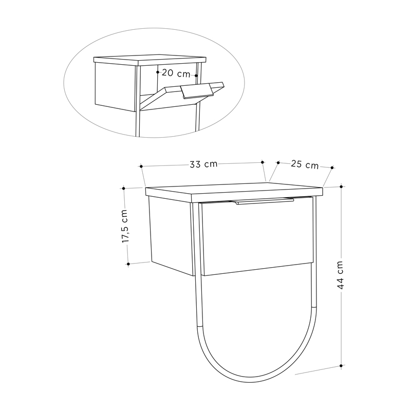 - Διαστάσεις: Μήκος 33 x Βάθος 25 x Ύψος 44 εκ.