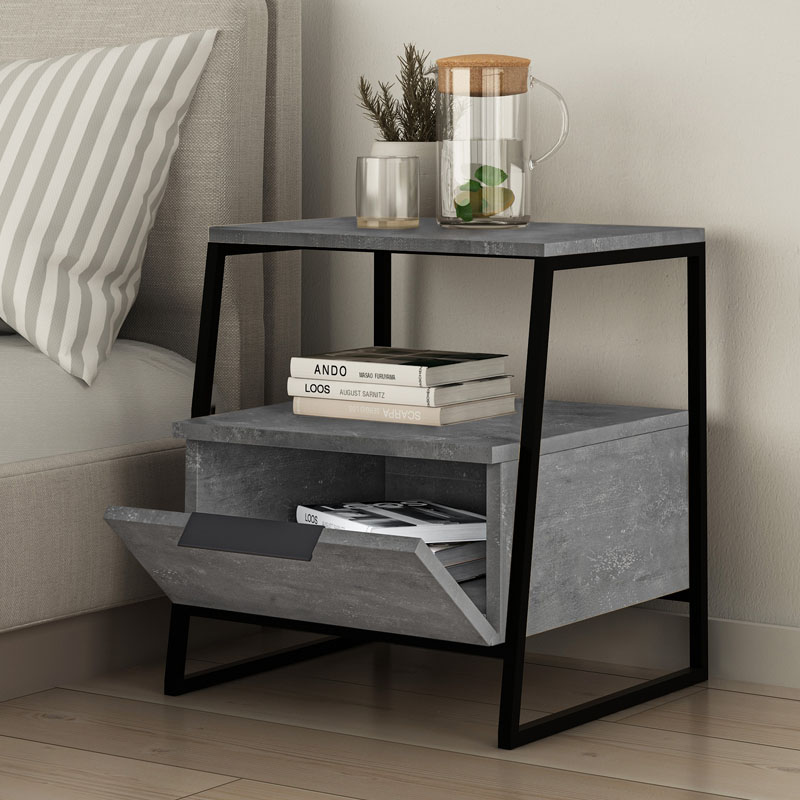 Κομοδίνο μελαμίνης Pal Megapap χρώμα γκρι ρετρό 45x40x50εκ.