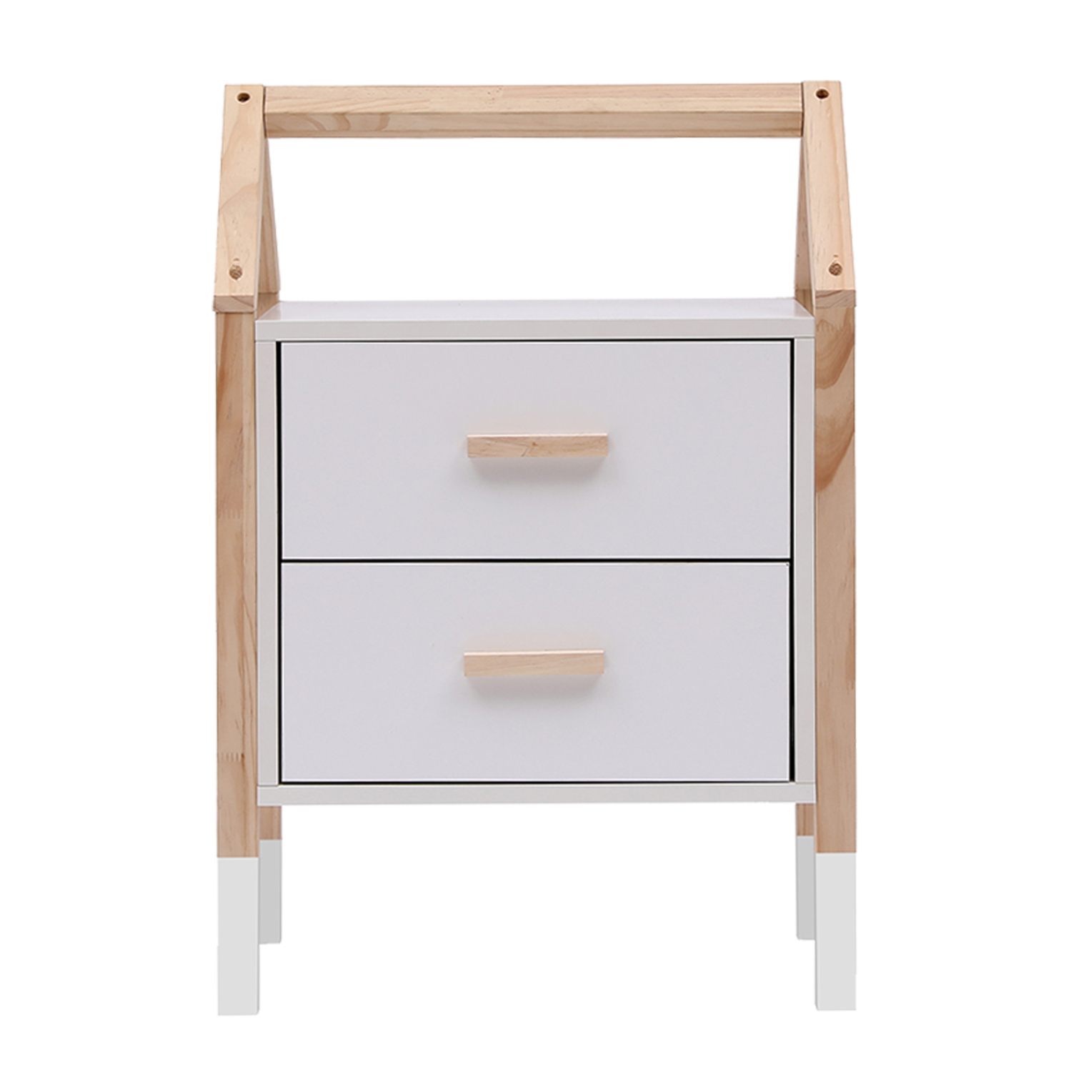 Σας παρουσιάζουμε το καινούργιο παιδικό κομοδίνο PEPE σε ΛΕΥΚΟ χρώμα. Ταιριάζει με ανάλογης αισθητικής κρεβάτια και διαθέτει δύο συρταράκια. Στηρίζεται σε ξύλινο σκελετό σε ΦΥΣΙΚΟ χρώμα ξύλου, σε σχήμα σπιτάκι. Είναι βαμμένο με αβλαβές βερνίκι με βάση το νερό και μη τοξικό, ιδανικό για παιδιά.