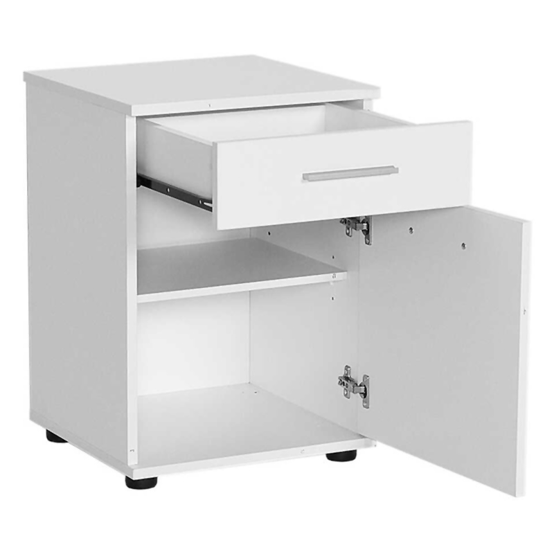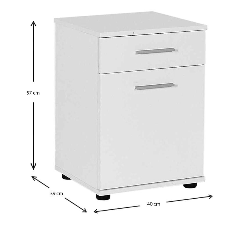 • Διαθέτει ένα συρτάρι κι ένα μονόφυλλο ντουλάπι με ένα εσωτερικό ράφι στο κάτω μέρος.