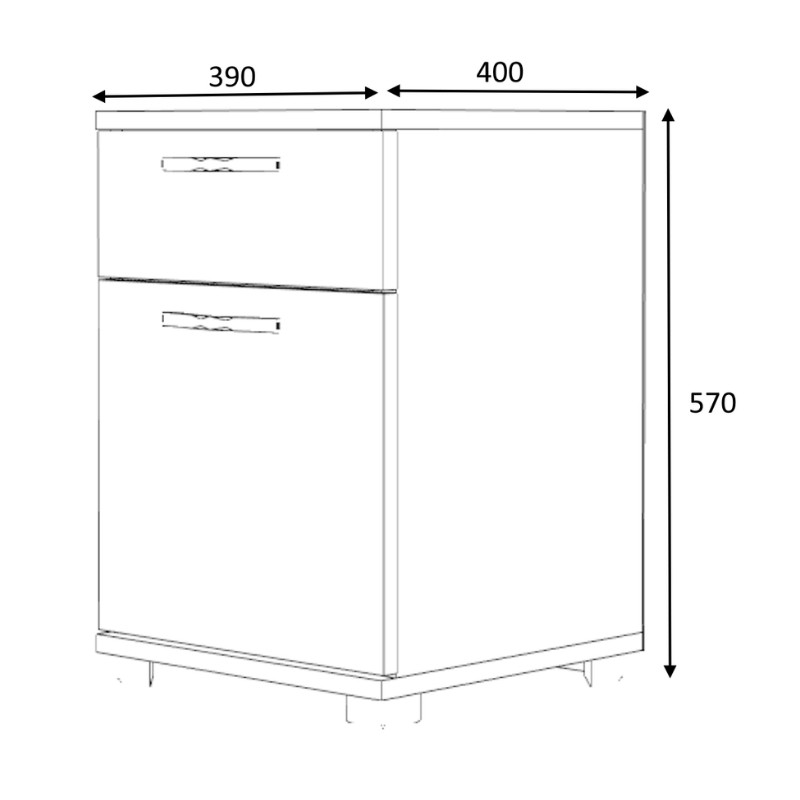 - Διαθέτει ένα συρτάρι και ένα ντουλάπι.