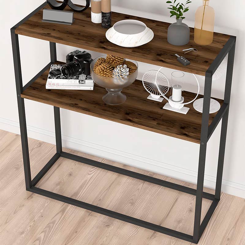 Κονσόλα Castel Megapap μεταλλική – μελαμίνης χρώμα μαύρο – καπνιστή καρυδιά 90×33,5×90εκ.