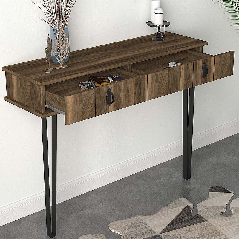 Κονσόλα επιτοίχια μελαμίνης Ursula Megapap χρώμα καρυδί 120×35,5×90εκ.