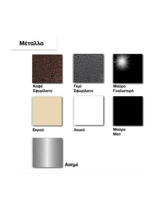 ασημί, γκρι σφυρίλατο, εκρού, καφέ σφυρίλατο, λευκό, μαύρο γυαλιστερό, μαύρο ματ