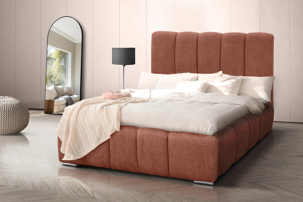 Κρεβάτι Kingston Megapap βελούδινο με αποθηκευτικό χώρο χρώμα melon pink 120×200εκ.