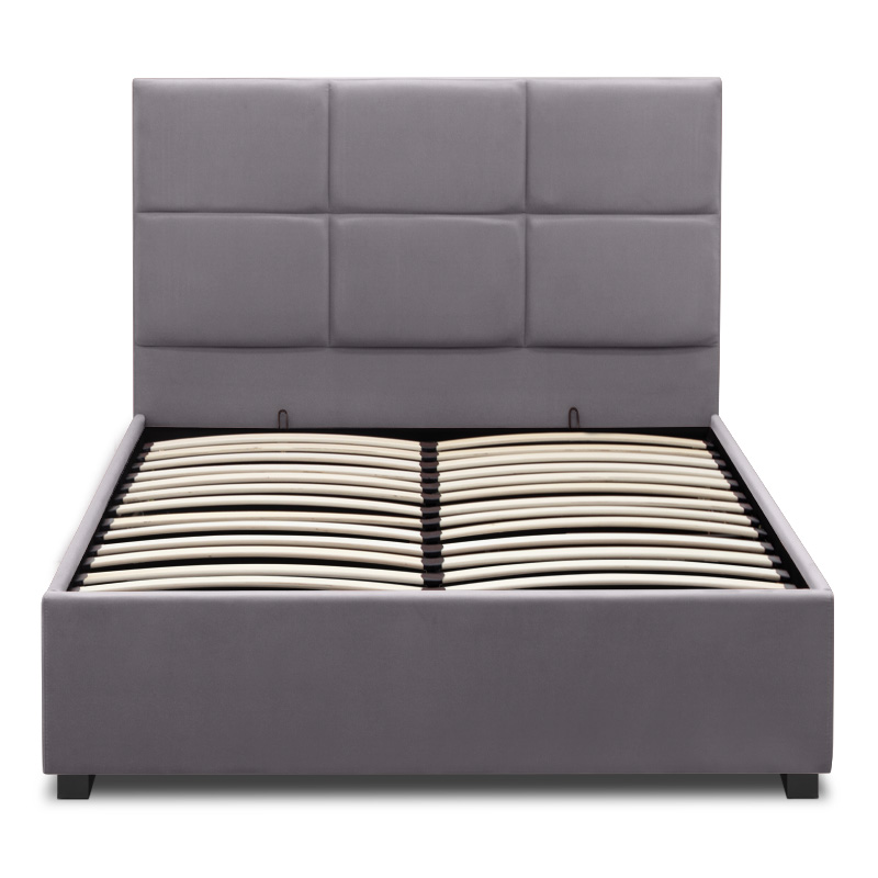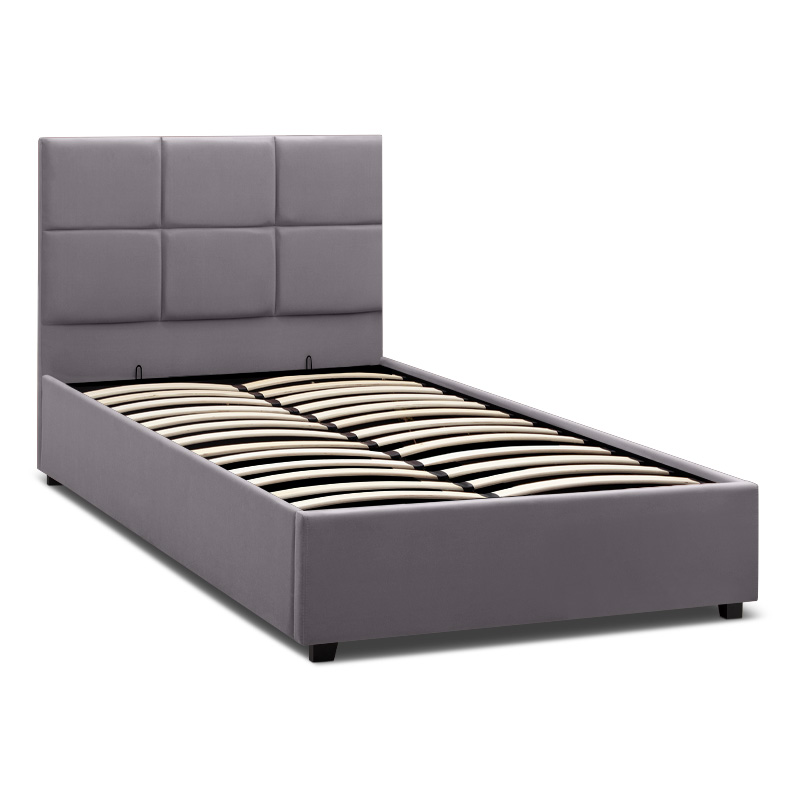 Κρεβάτι Kingston Megapap βελούδινο με αποθηκευτικό χώρο χρώμα γκρι 120×200εκ.