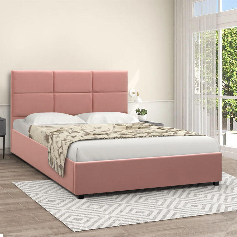 Κρεβάτι Kingston Megapap βελούδινο με αποθηκευτικό χώρο χρώμα melon pink 160×200εκ.