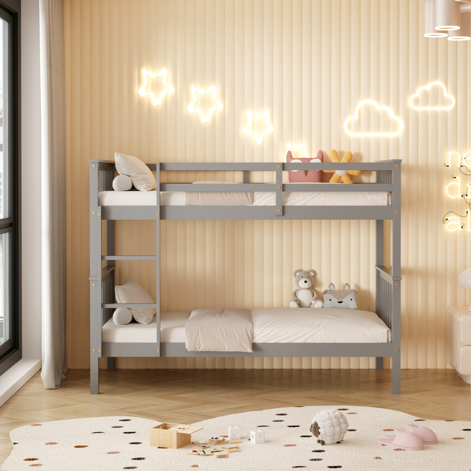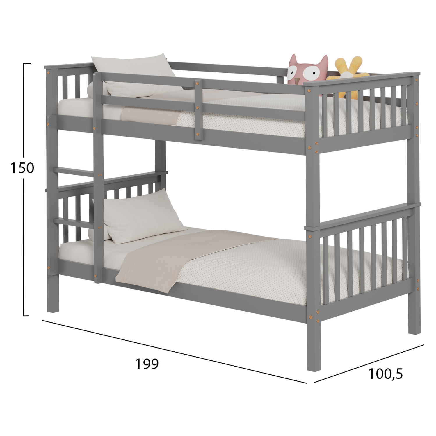 Σας παρουσιάζουμε το «LANTAI» που είναι ένα καινούργιο διώροφο παιδικό κρεβάτι-κουκέτα. Τα κρεβάτια είναι σε διάσταση για μονό στρώμα 90×190 εκ, και αποτελεί μια άριστης ποιότητας, μοντέρνα και ασφαλή επιλογή για το παιδικό δωμάτιο. Η κουκέτα είναι ξύλινη σε ΓΚΡΙ χρώμα βαμμένο με αβλαβές βερνίκι με βάση το νερό και μη τοξικό, ιδανικό για παιδιά. Τα στρώματα τοποθετούνται σε τάβλες κατασκευασμένες από ξυλεία κόντρα πλακέ. Διαθέτει όμορφη σκάλα πρόσβασης στο επάνω κρεβάτι καθώς και κάγκελα προστασίας περιμετρικά στο επάνω κρεβάτι, ενώ τα πόδια είναι σχετικά ψηλά, αφήνοντας χώρο για αποθήκευση πραγμάτων και εύκολο καθάρισμα.