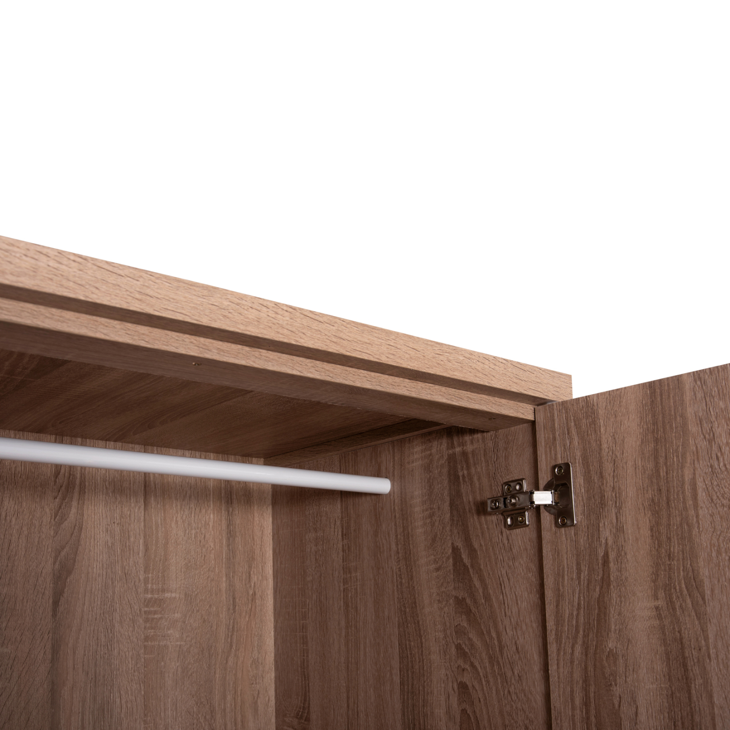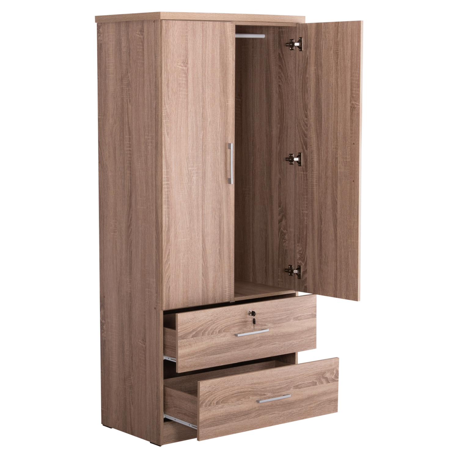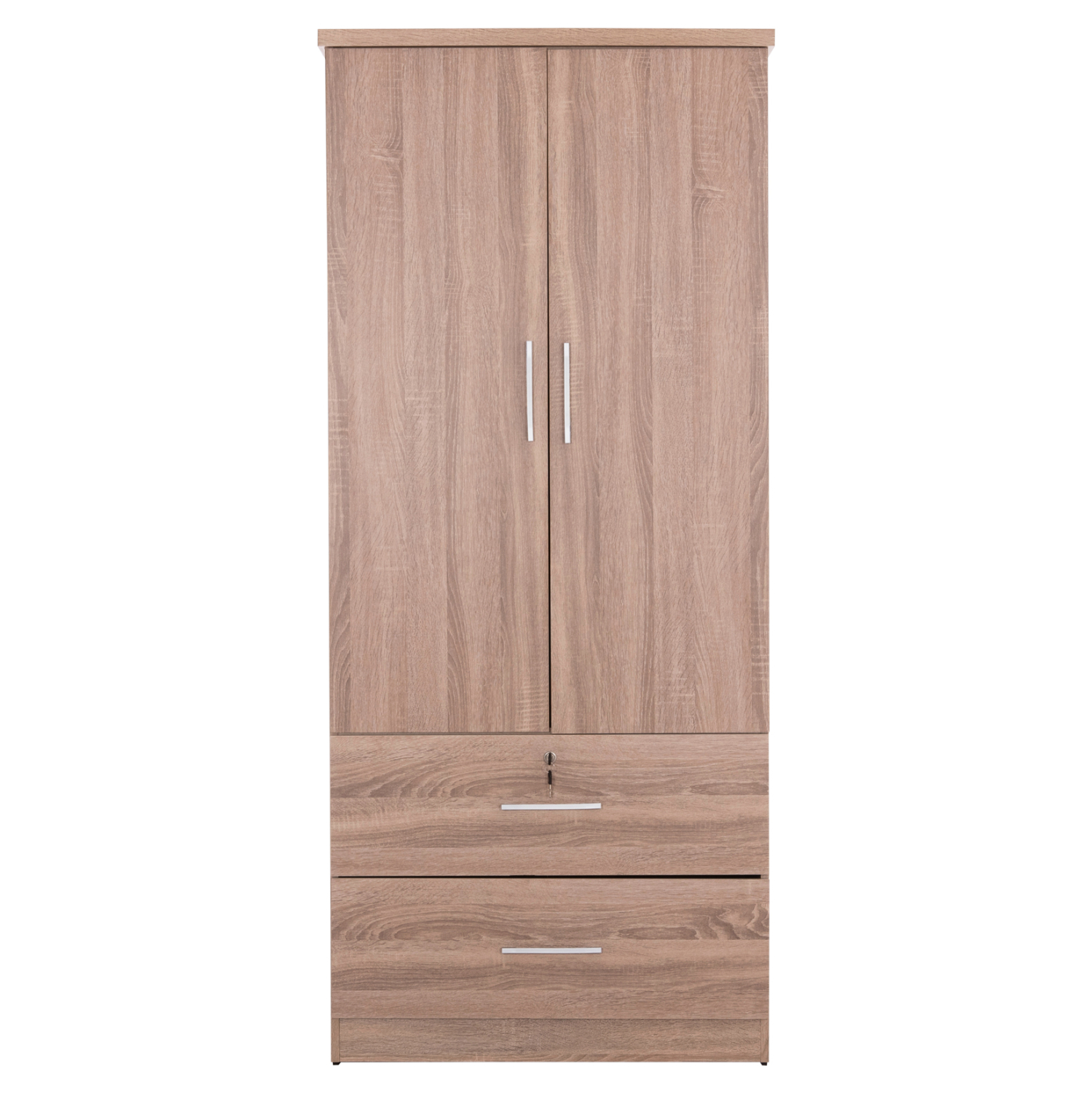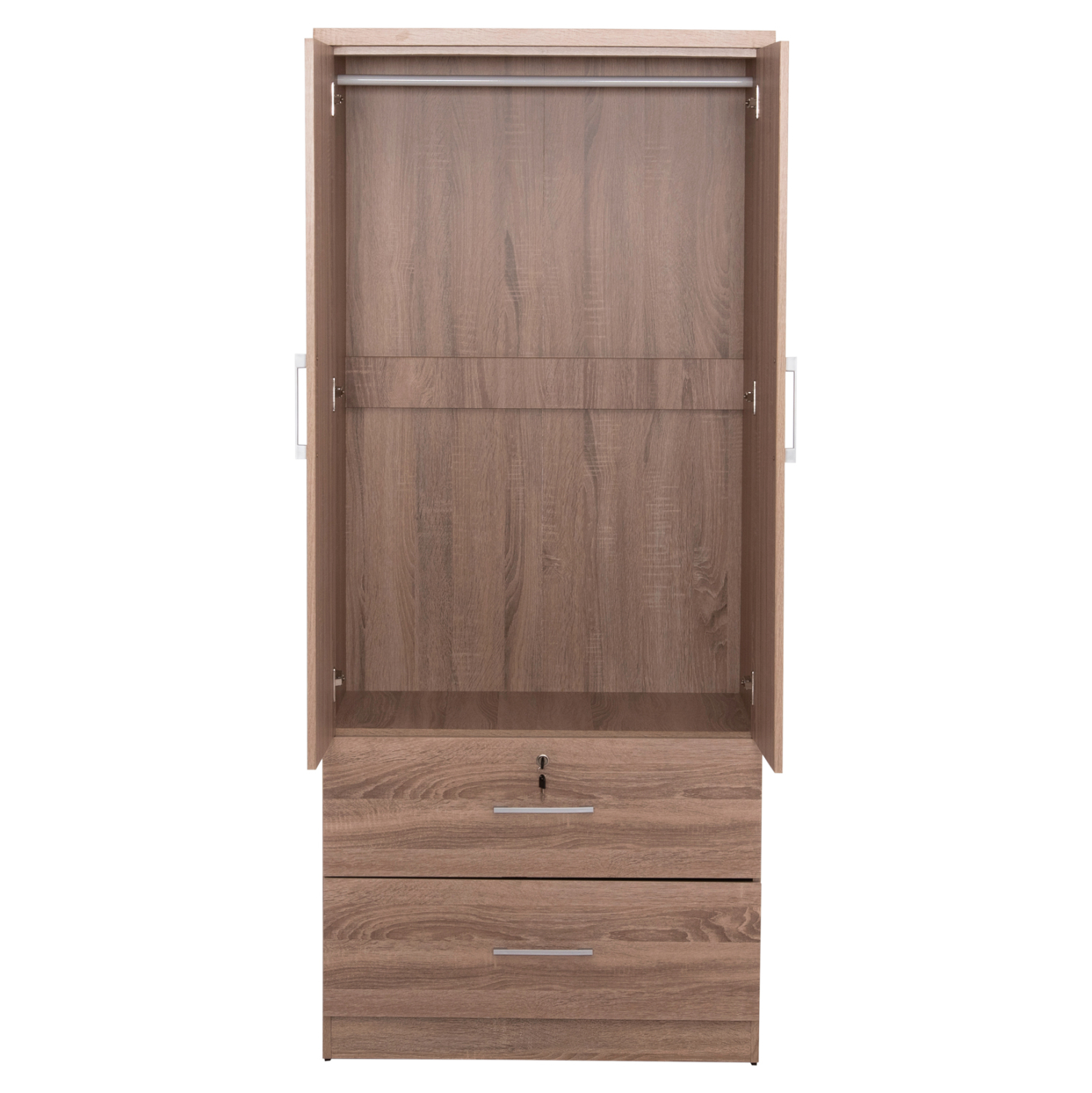 Η δίφυλλη ντουλάπα REINA είναι μια πρακτικότατη ντουλάπα που έχει φτιαχτεί με γνώμονα την όσο το δυνατόν καλύτερη εκμετάλλευση του χώρου. Έχει 2 πόρτες, αλλά με απροσδόκητα άνετους χώρους στο εσωτερικό της, και διαθέτει απλά μια μπάρα κρέμασης ρούχων. Στο κάτω μέρος υπάρχουν 2 συρτάρια, ένα εκ των οποίων διαθέτει κλειδαριά. Είναι κατασκευασμένη από μελαμίνη σε SONAMA OAK χρώμα και αισθητικά μπορεί να ταιριάξει με πολλά άλλα στυλ, χάρη και στις «καθαρές» γραμμές της.