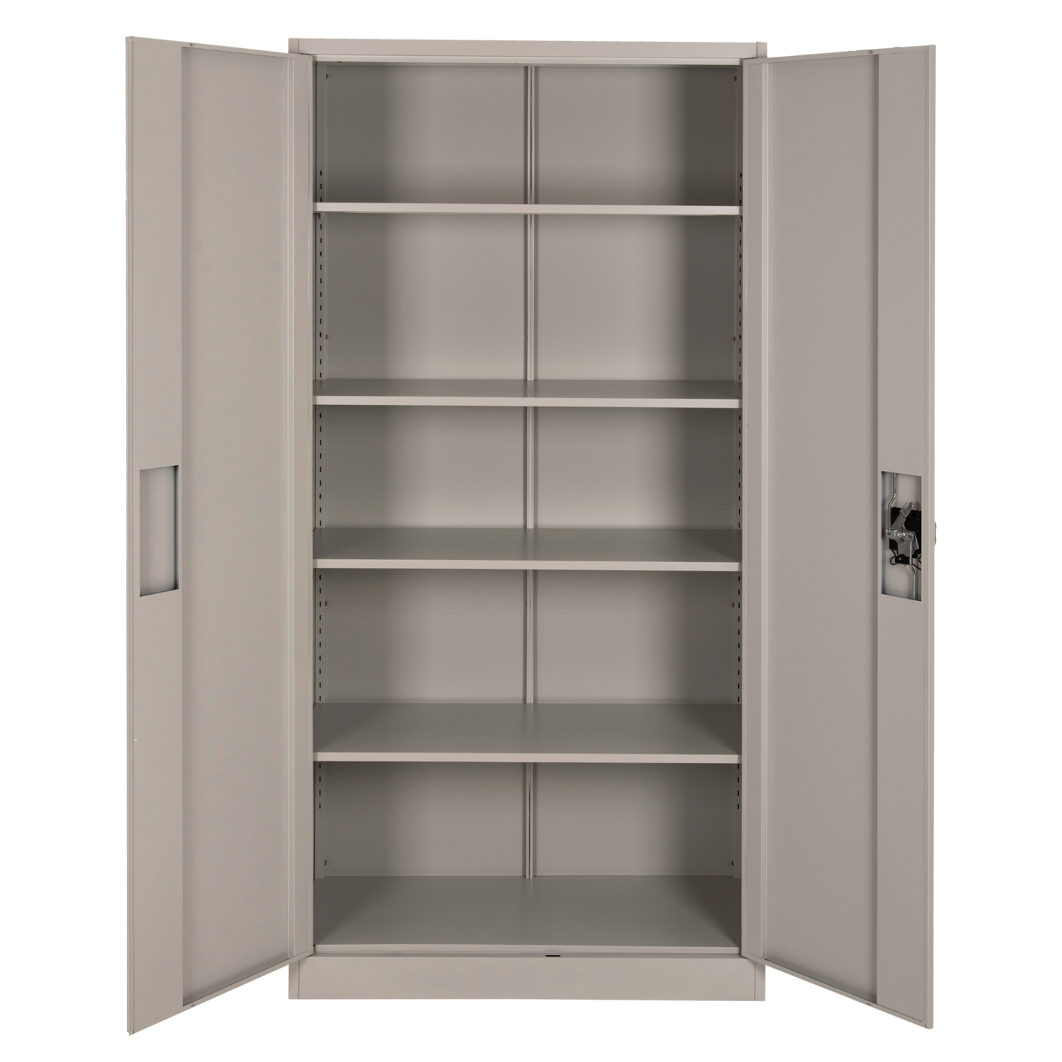 Η ΗΜ5959.11 είναι μια πρακτικότατη μεταλλική ντουλάπα που έχει φτιαχτεί με γνώμονα την χωρητικότητα και την ανθεκτικότητα. Είναι δίφυλλη με τις δύο πόρτες να κλείνουν ακριβώς στην μέση της κατασκευής, ενώ το εσωτερικό είναι ένας ενιαίος χώρος χωρίς κάθετα χωρίσματα. Διαθέτει 4 ράφια που δημιουργούν 5 αποθηκευτικούς χώρους. Οι πόρτες διαθέτουν κλειδαριά που κλειδώνει με κλειδί, ενώ το χρώμα της ντουλάπας είναι πολύ ανοιχτό γκρι.