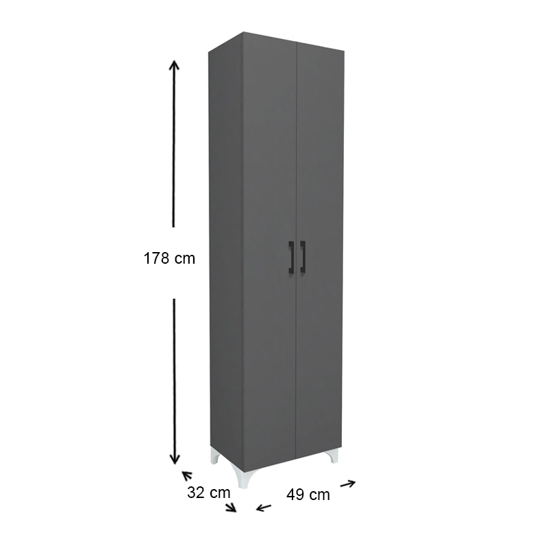Ντουλάπα – Παπουτσοθήκη μελαμίνης Lilly Megapap χρώμα ανθρακί 49x32x178εκ.