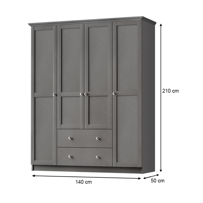 Ντουλάπα ρούχων Emily Megapap τετράφυλλη χρώμα ανθρακί 140x50x210εκ.