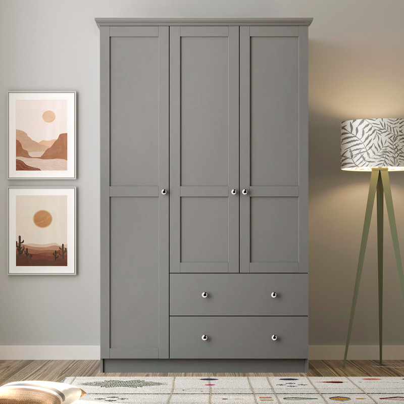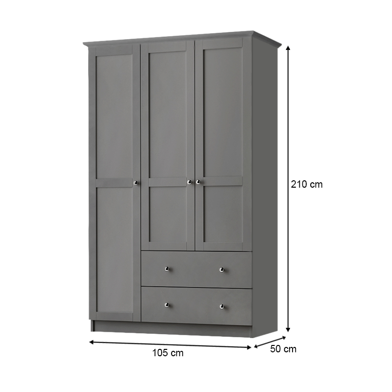 Ντουλάπα ρούχων Emily Megapap τρίφυλλη χρώμα ανθρακί 105x50x210εκ.