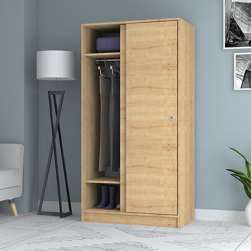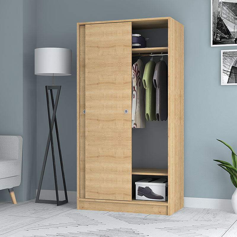 Ντουλάπα ρούχων Misra Megapap δίφυλλη συρόμενη από μελαμίνη χρώμα φυσικό οξιάς 94x52x182εκ.