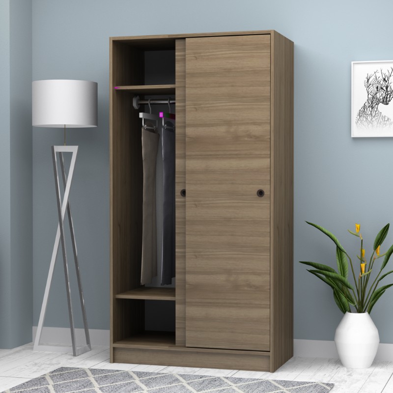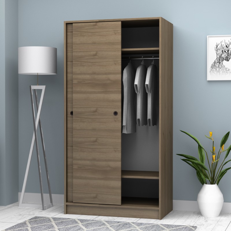 Ντουλάπα ρούχων Misra Megapap δίφυλλη συρόμενη από μελαμίνη χρώμα καρυδί 94x52x182εκ.
