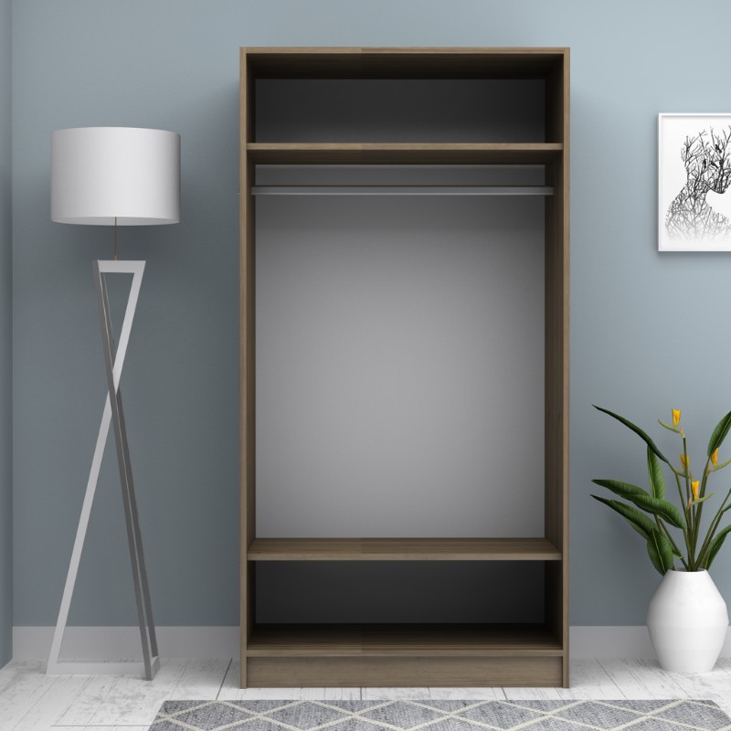 Ντουλάπα ρούχων Misra Megapap δίφυλλη συρόμενη από μελαμίνη χρώμα καρυδί 94x52x182εκ.