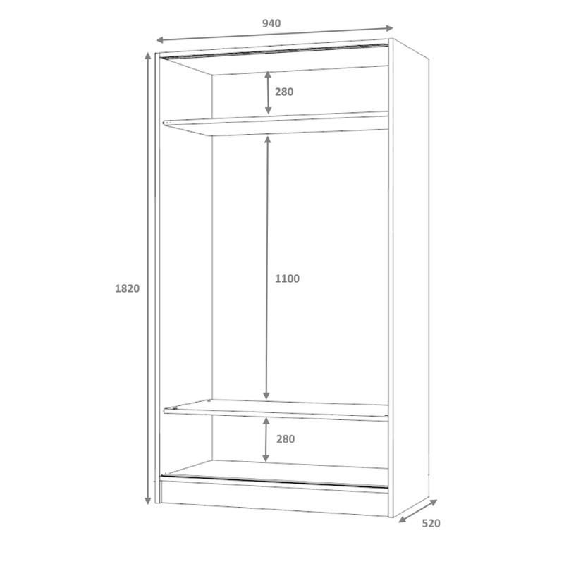 • Διαστάσεις: Μήκος 94 x Βάθος 52 x Ύψος 182 εκ.