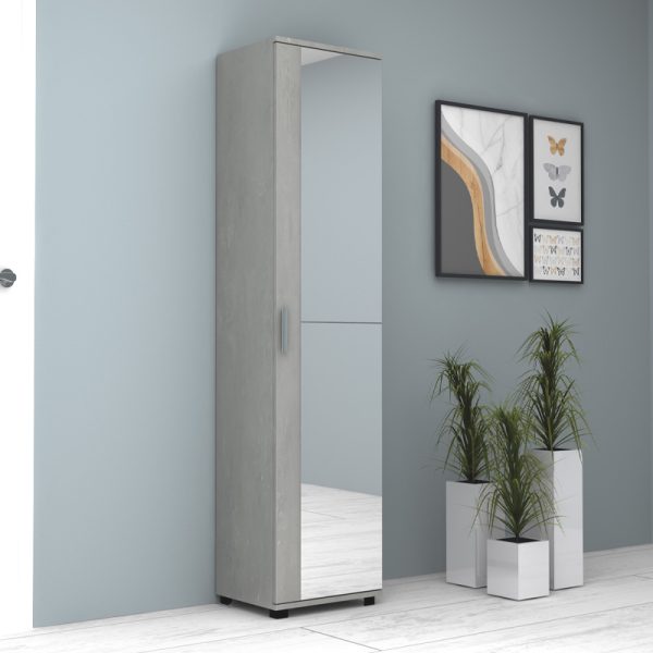 Ντουλάπα ρούχων - παπουτσοθήκη Visla Megapap μονόφυλλη με καθρέπτη χρώμα γκρι σκυροδέματος 45x36x187εκ. €183.00 Original price was: €183.00.€149.00Η τρέχουσα τιμή είναι: €149.00.