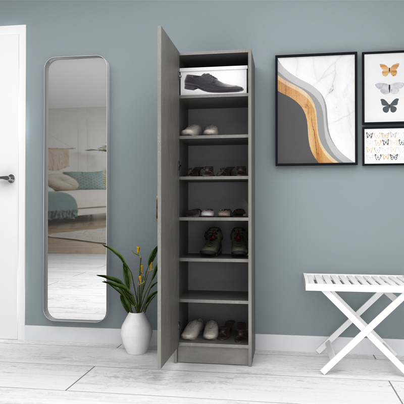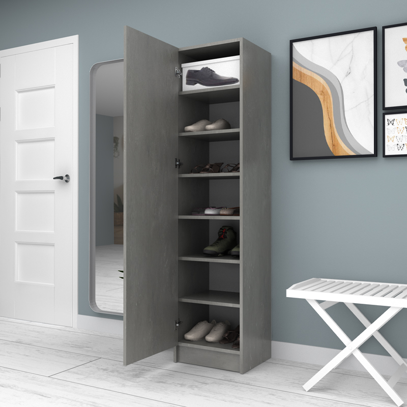 Ντουλάπα ρούχων – παπουτσοθήκη Petro Megapap μονόφυλλη χρώμα γκρι σκυροδέματος 45x38x180εκ.