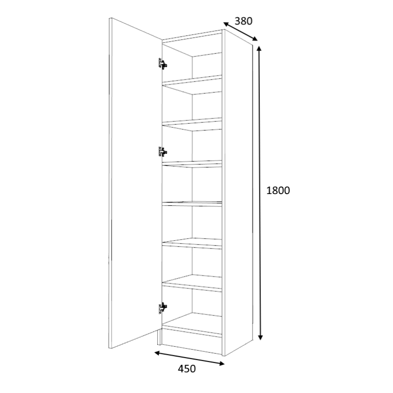 • Διαστάσεις: Μήκος 45 x Βάθος 38 x Ύψος 180 εκ.