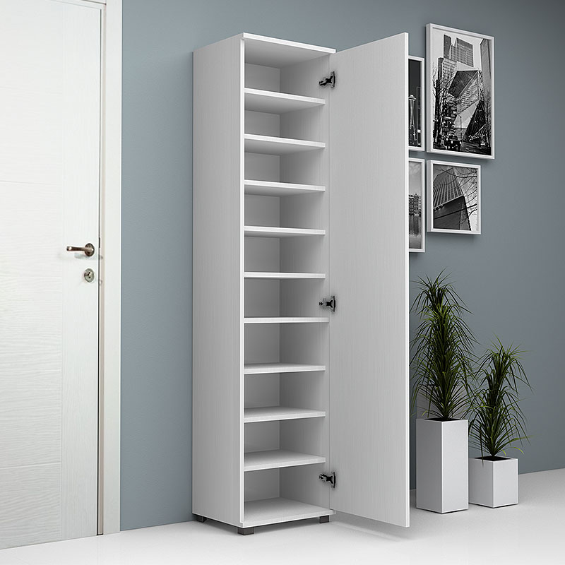 Ντουλάπα ρούχων – παπουτσοθήκη Visla Megapap μονόφυλλη από μελαμίνη με καθρέπτη χρώμα λευκό 45x36x187εκ.