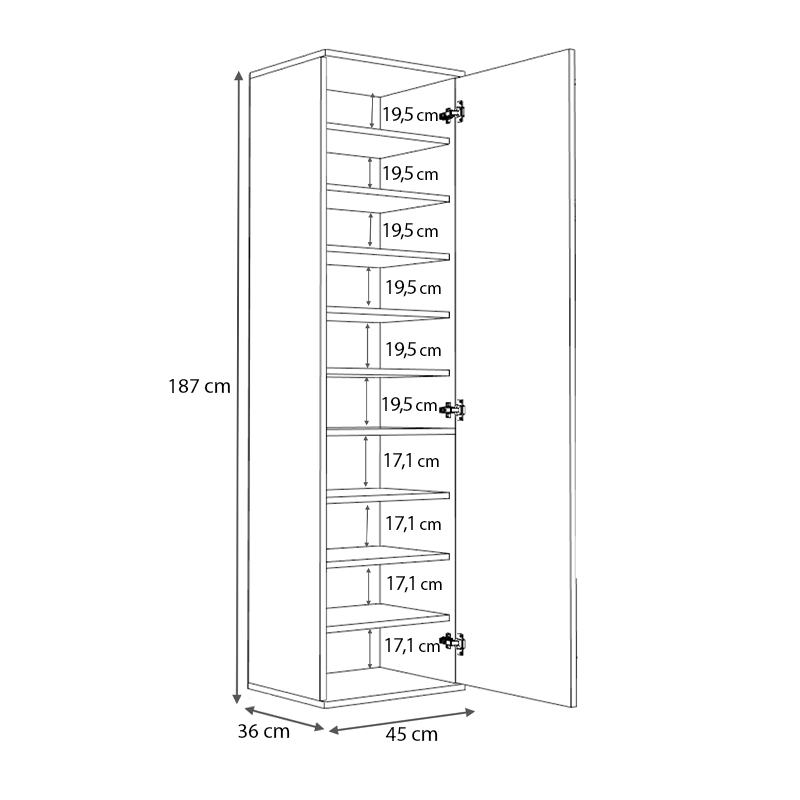 - Διαστάσεις: Μήκος 45 x Βάθος 36 x Ύψος 187 εκ.