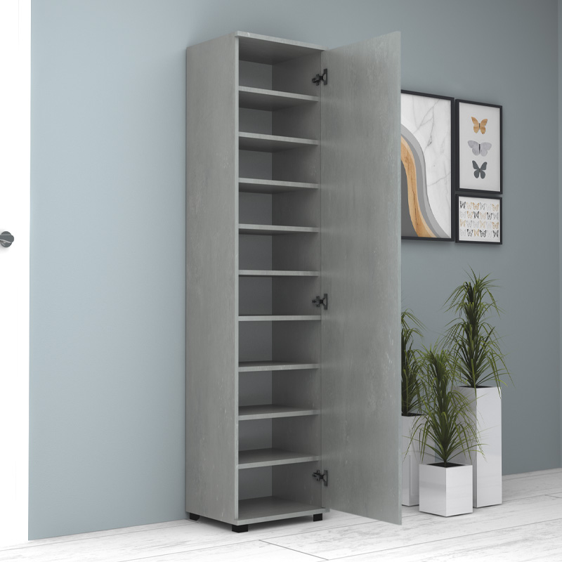 Ντουλάπα ρούχων – παπουτσοθήκη Visla Megapap μονόφυλλη με καθρέπτη χρώμα γκρι σκυροδέματος 45x36x187εκ.