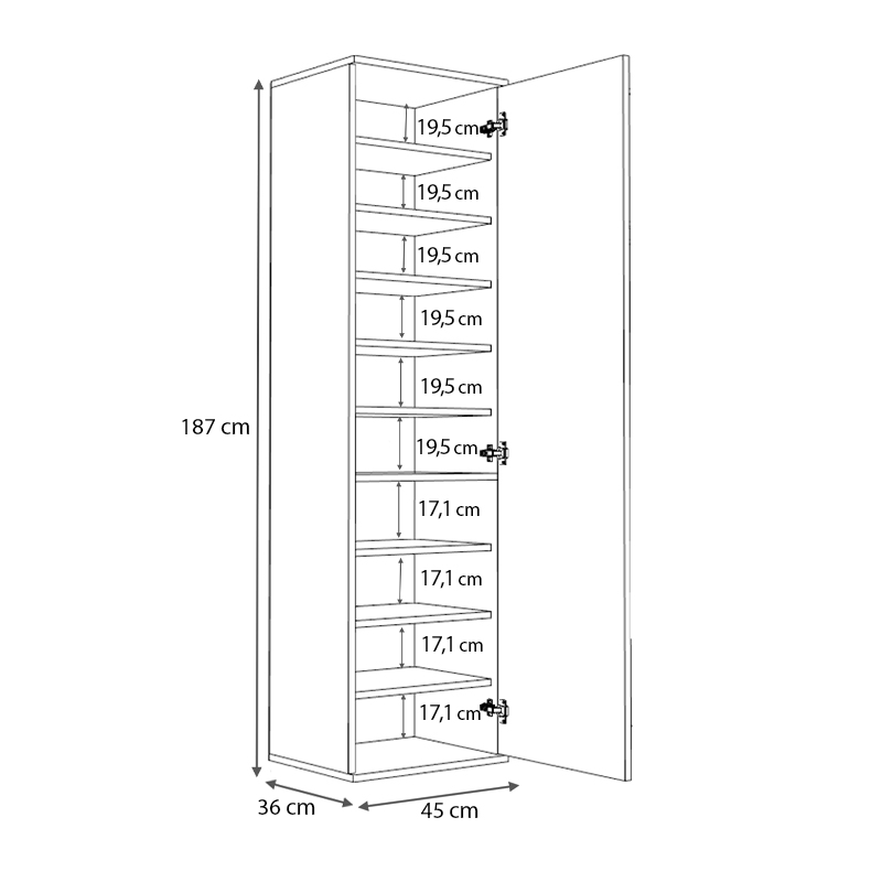 • Διαστάσεις: Μήκος 45 x Βάθος 36 x Ύψος 187 εκ.