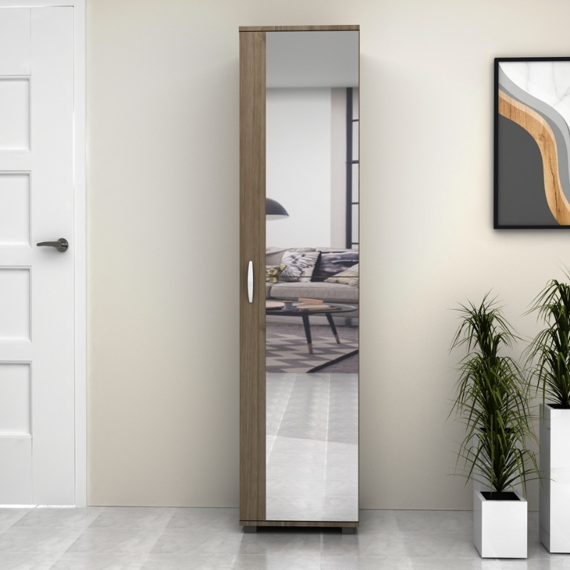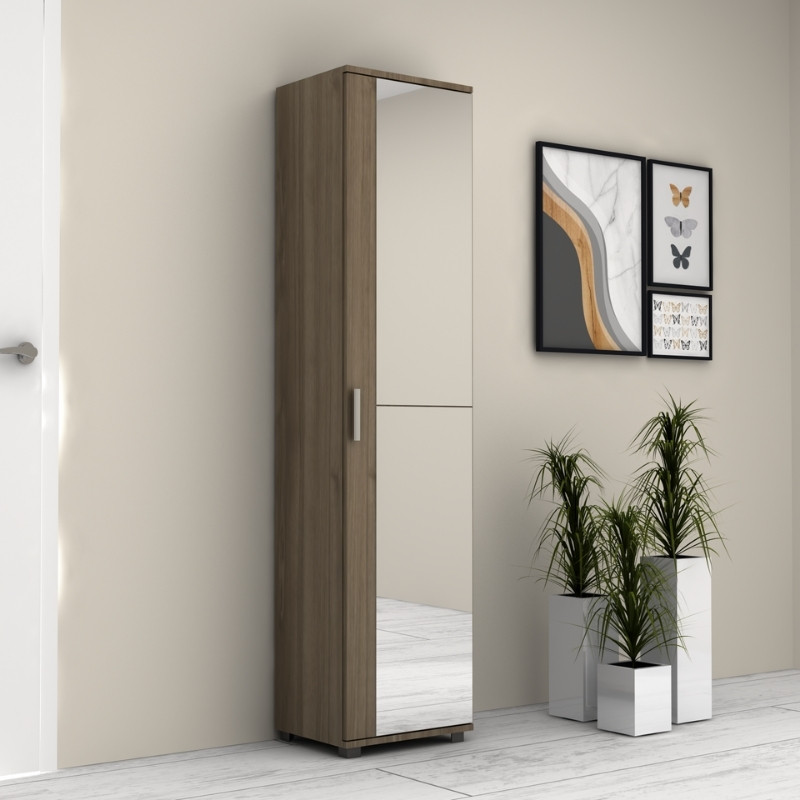 Ντουλάπα ρούχων – παπουτσοθήκη Visla Megapap μονόφυλλη με καθρέπτη χρώμα καρυδί 45x36x187εκ.