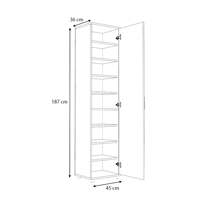 • Διαστάσεις: Μήκος 45 x Βάθος 36 x Ύψος 187 εκ.