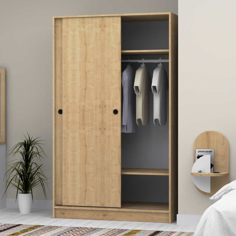 Ντουλάπα ρούχων Regio Megapap δίφυλλη συρόμενη χρώμα φυσικό οξιάς 120x60x200εκ.