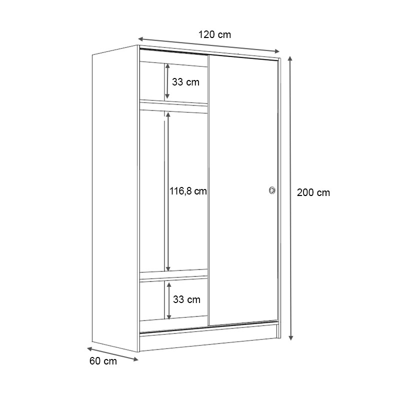 - Διαστάσεις: Μήκος 120 x Βάθος 60 x Ύψος 200 εκ.