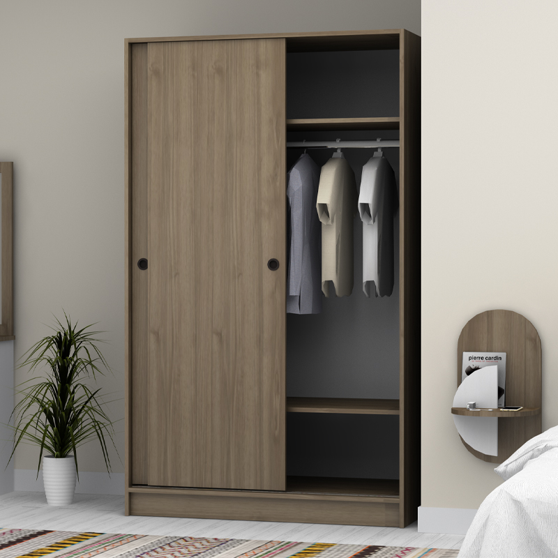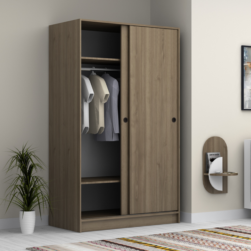 Ντουλάπα ρούχων Regio Megapap δίφυλλη συρόμενη χρώμα καρυδί 120x60x200εκ.