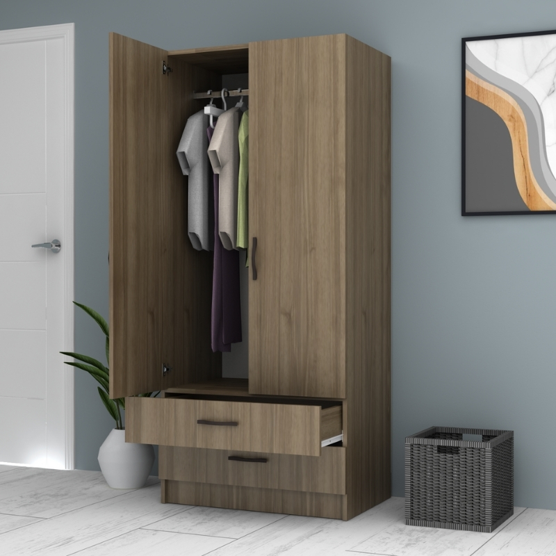 Ντουλάπα ρούχων Ricardo Megapap δίφυλλη χρώμα καρυδί 80×51,8×181εκ.