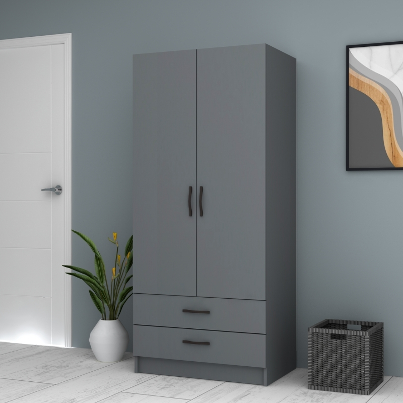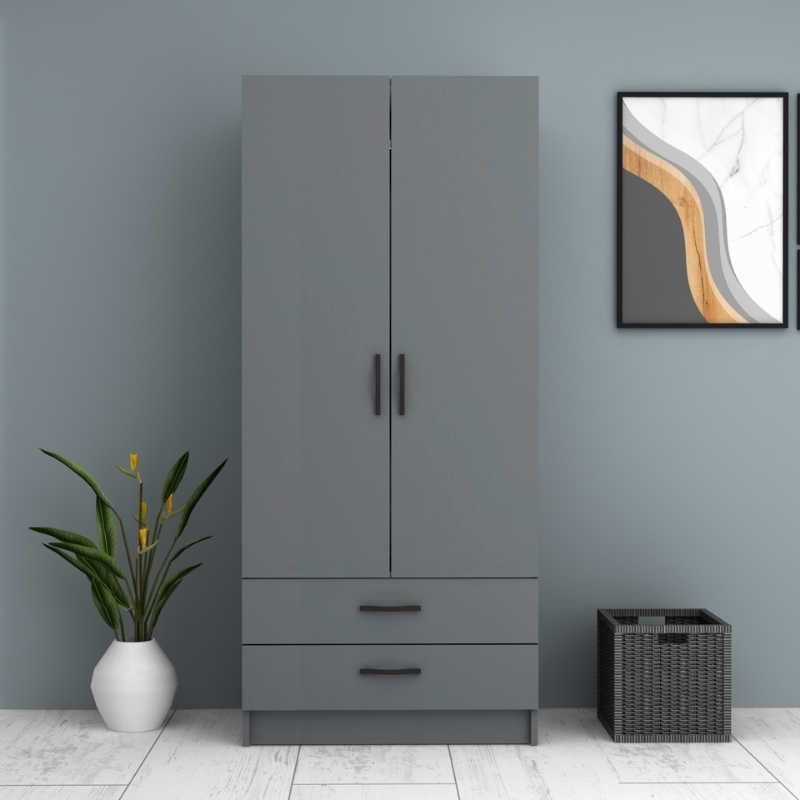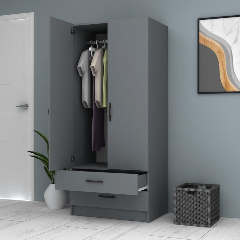 Ντουλάπα ρούχων Ricardo Megapap δίφυλλη χρώμα ανθρακί 80×51,8×181εκ.
