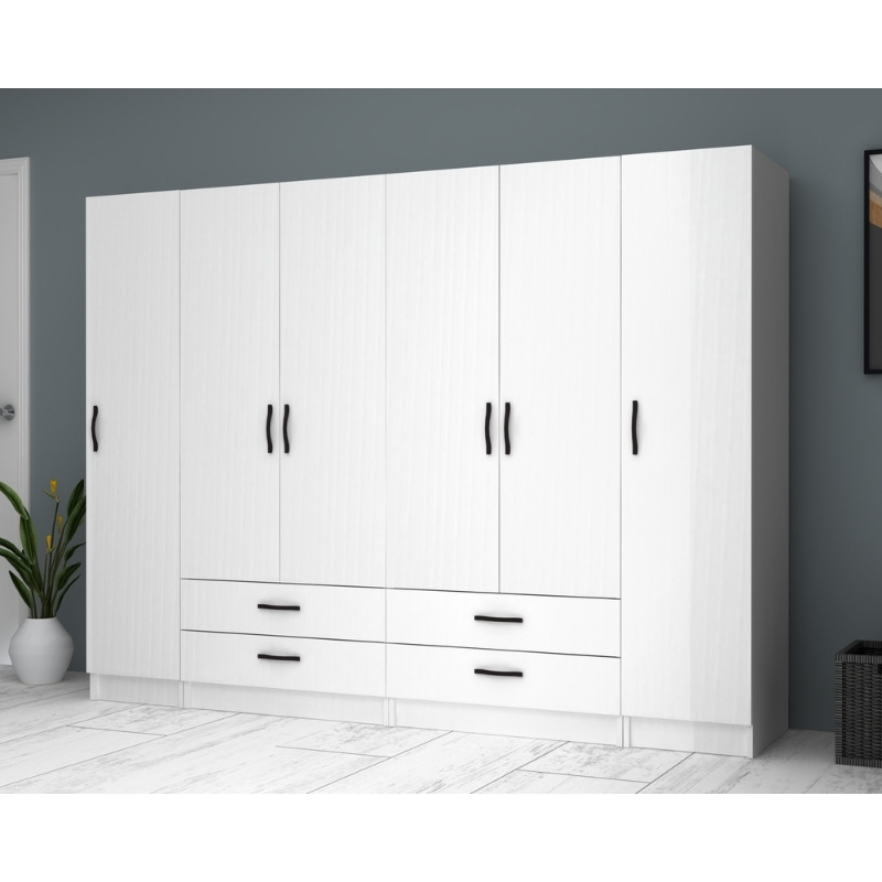 Ντουλάπα ρούχων Ricardo Megapap εξάφυλλη χρώμα λευκό 240×61,8×181εκ.